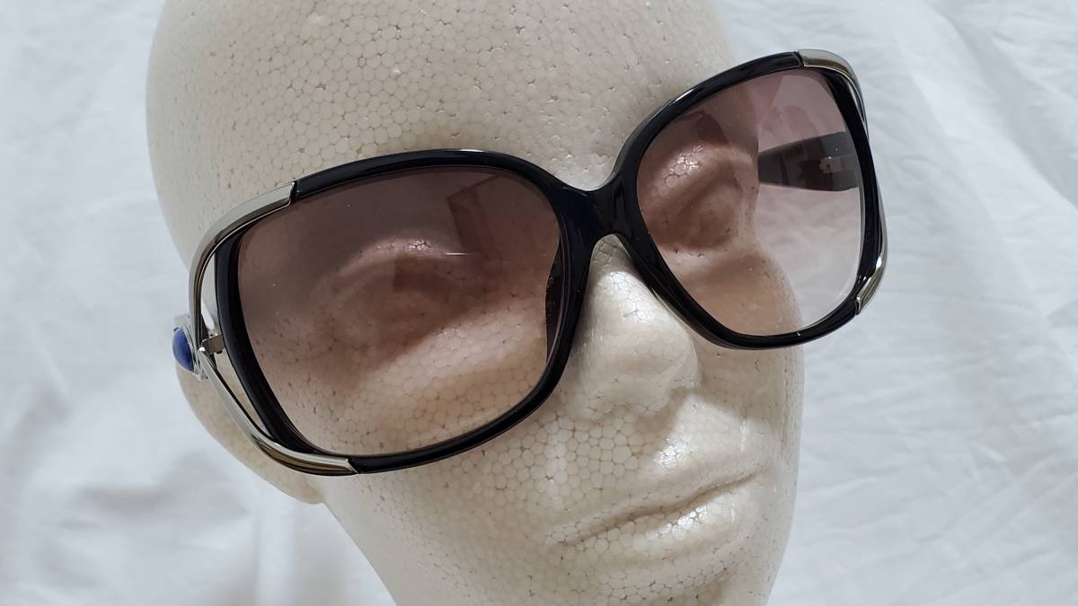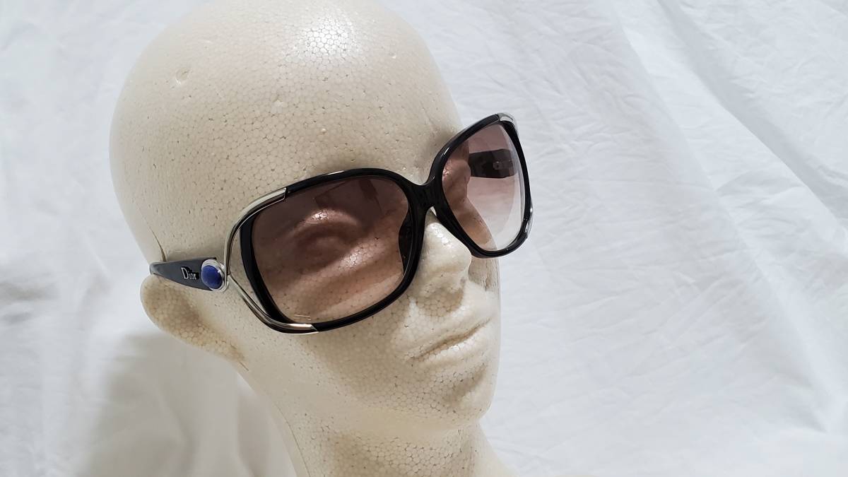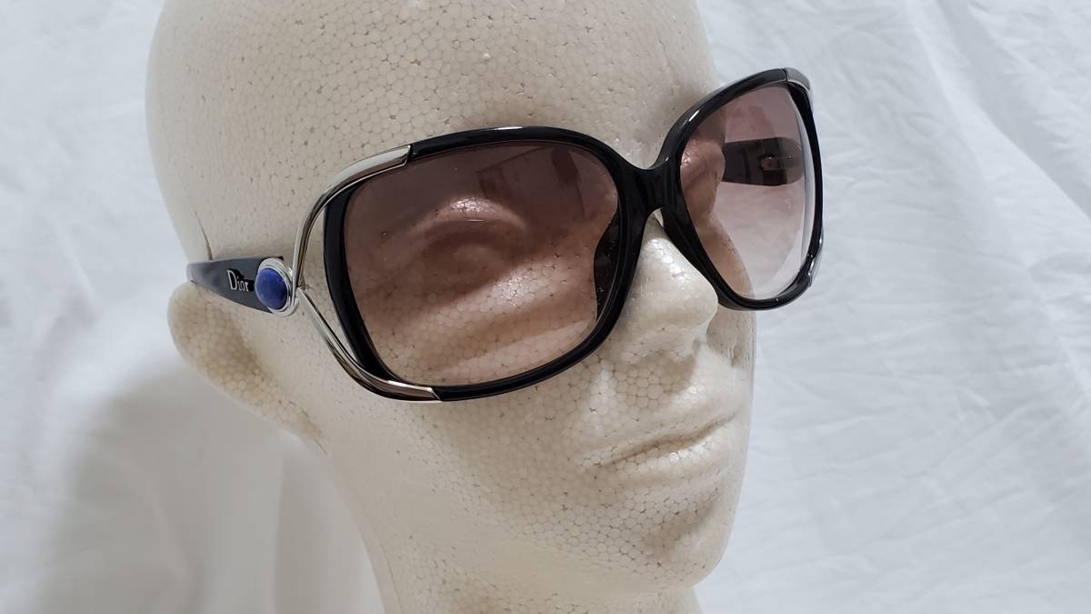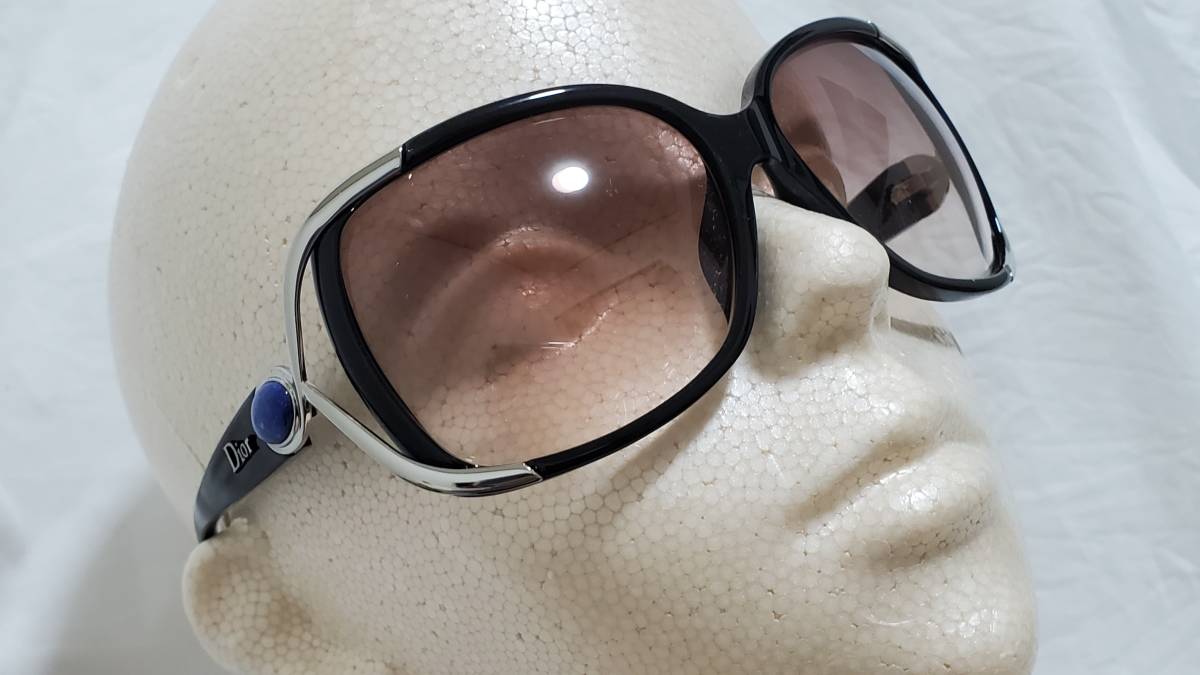 正規 レア Christian Dior ディオール ロゴ メタルアイライン ジュエリーサングラス 黒 茶 青 ラピス 大粒ストーン ビッグレンズアイウェア
