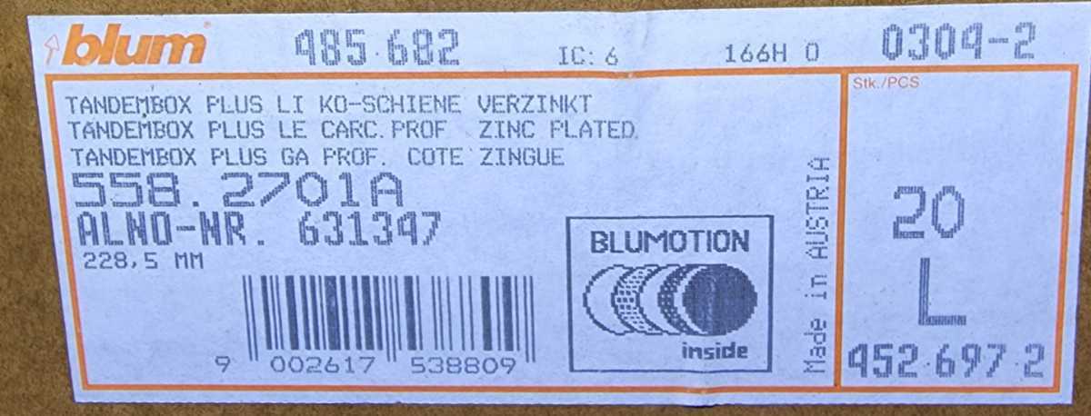 今回は BLUM TANDEMBOX ガイド 558.2701A LR(5本セット)の紹介です。