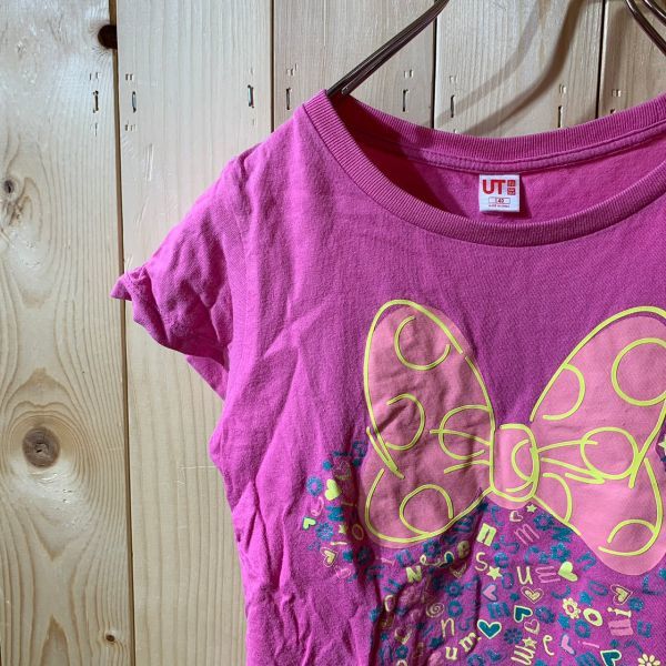 【KY248】UNIQLO ユニクロ 半袖Tシャツ マゼンタ キッズ 140 ポス