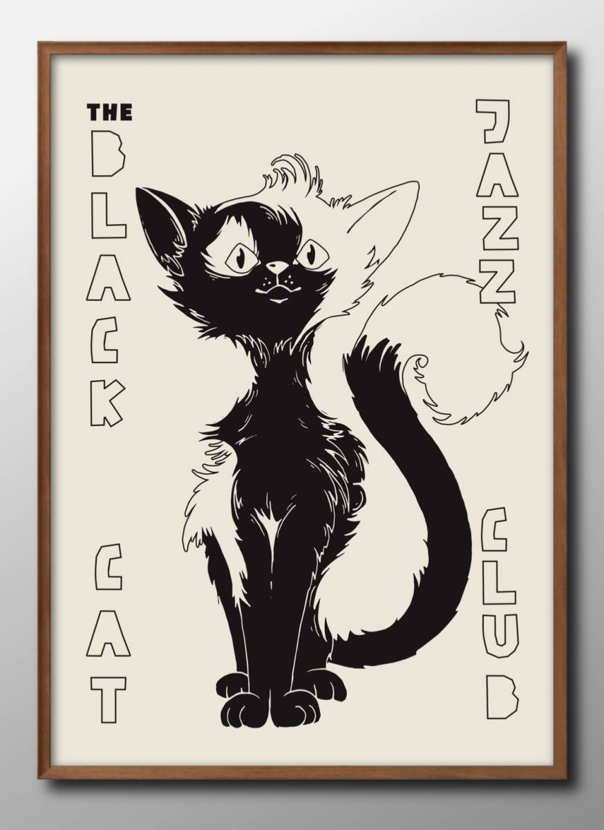 10683■送料無料!!アートポスター 絵画 A3サイズ 『ジャズクラブ JAZZ ブラックキャット 猫』イラスト デザイン 北欧 マット紙