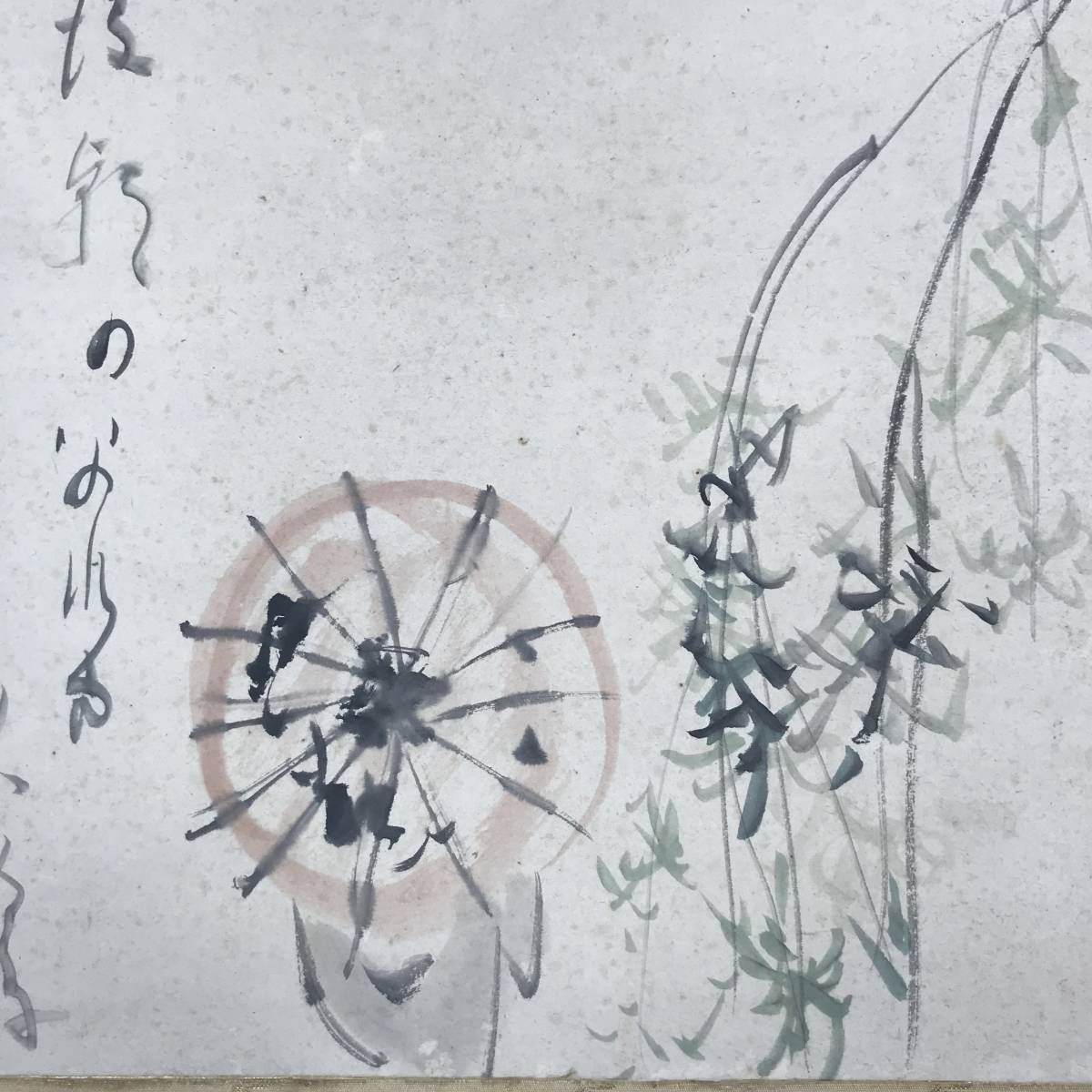 【作品状態】 本紙は紙本肉筆です。本紙は薄汚れ、全体に糊シミあります。 表装は全体に汚れシミ、天地に多少の虫穴、右端に数ヶ所の欠損あります。