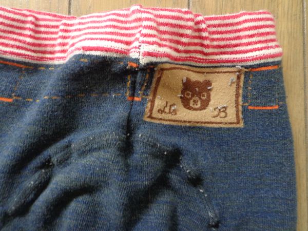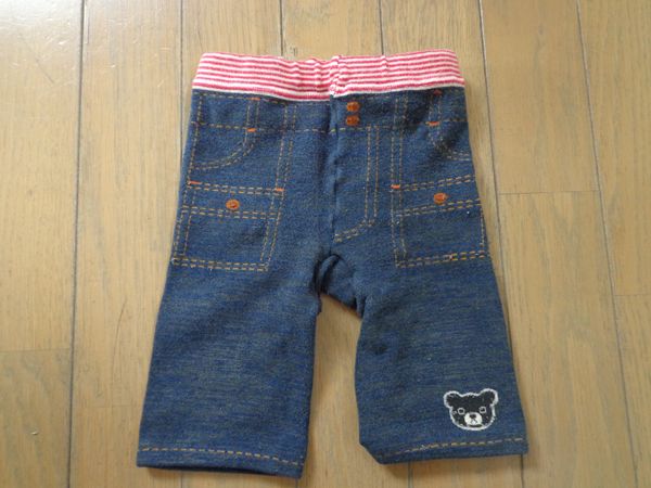 ズボンのような柄で、裾にはブラックベアの絵の入ったとてもかわいいお品です
