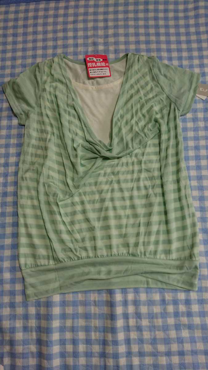 @♪401☆未使用・保管品☆授乳服☆ドレープが素敵な半袖プルオーバー 緑×М①