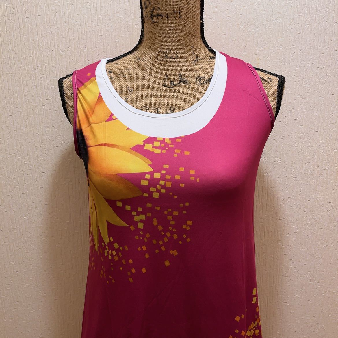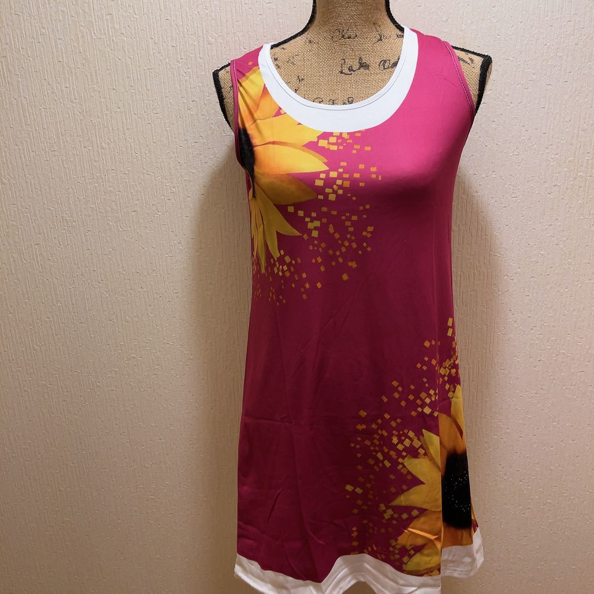 商品名 : 新品★ピンク地★ヒマワリ柄ワンピース★ホームウエア★キャバ&水商売衣装★L