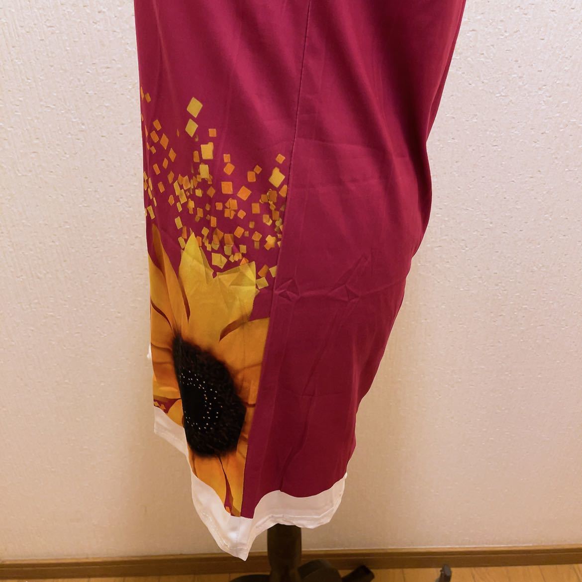 ★ピンク地にヒマワリ柄ワンピース。胸元、スカート裾にホワイトが入っています。セクシーなワンピース、ドレスです。