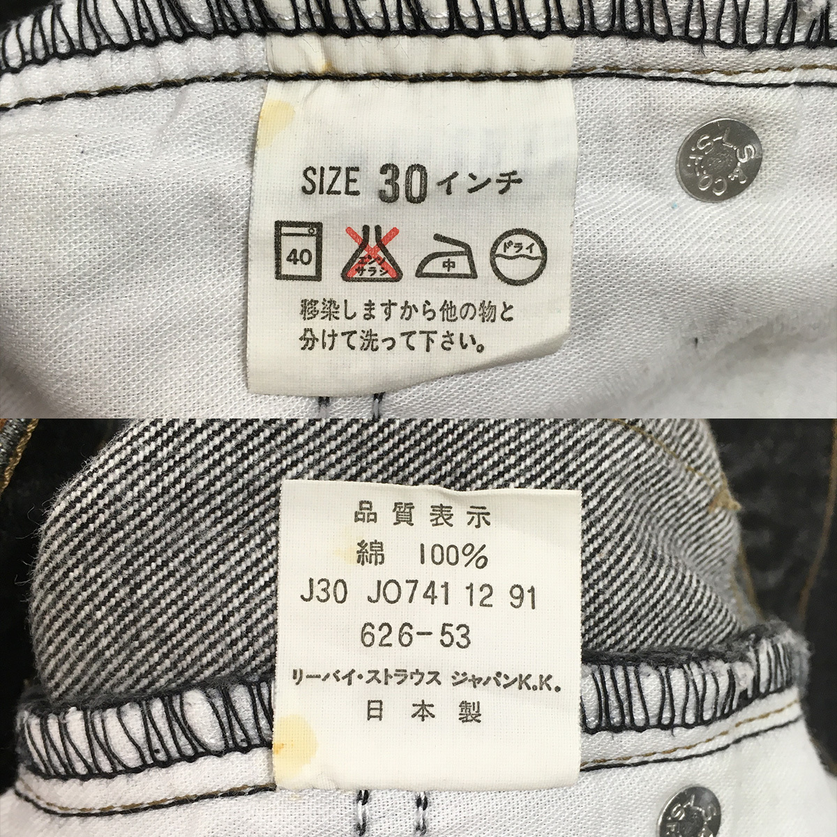 【90s】Levi's リーバイス 626-53 日本製 91年 ブラック デニム テーパード ジーンズ W30 パンツ 革パッチ ジップフライ
