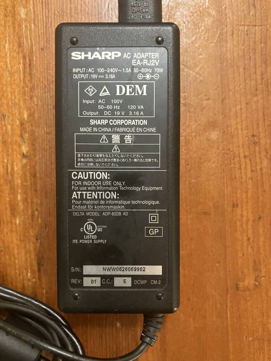 SHARP 19V3.16A ACアダプター EA-RJ2V