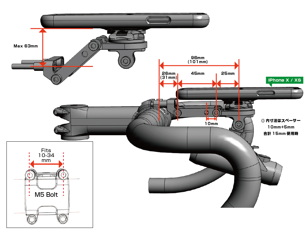 ・対応ステム:M5ボルト/C-C 10mm-34mm