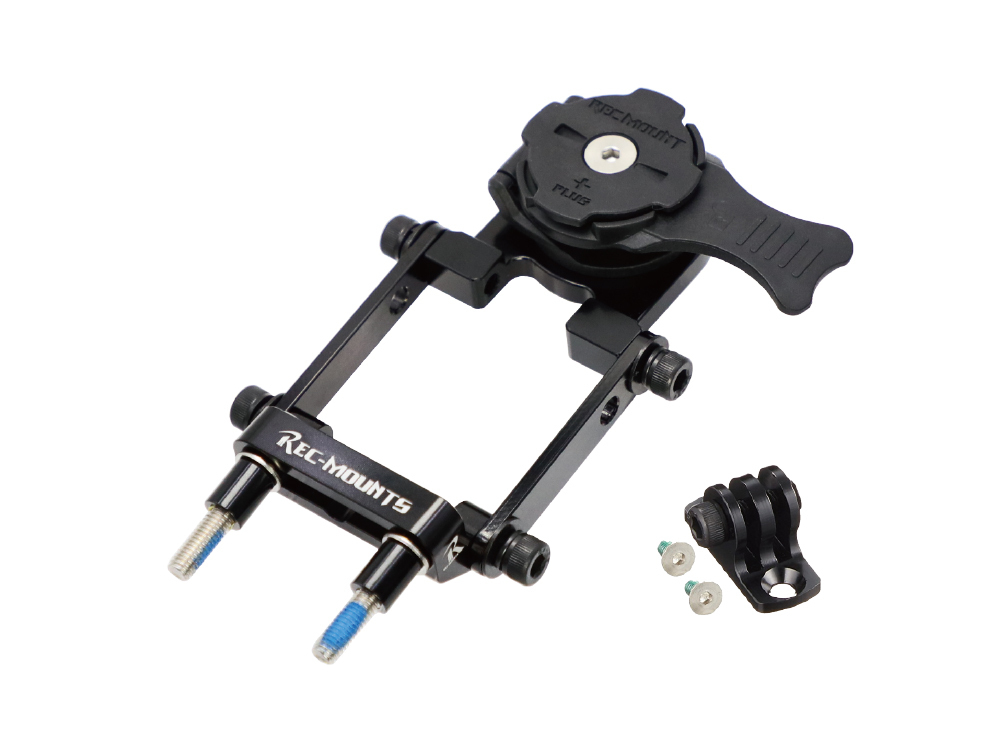 ステムクランプ上側のM5ボルトを外し、分解図の通りにマウント本体と下部アダプター(ゴープロインターフェイス)を固定してください。