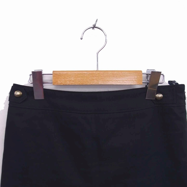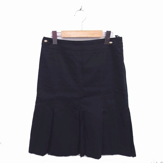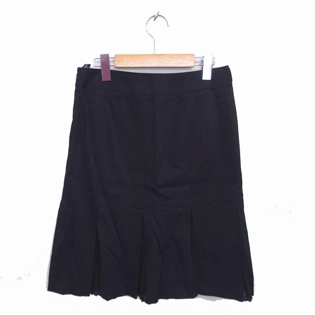 ロペ ROPE 台形 スカート 膝下丈 裾プリーツ 9 黒 ブラック /TT26 レディース