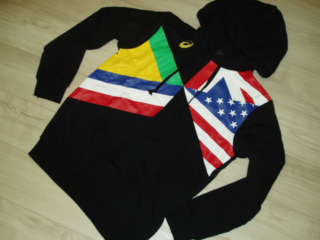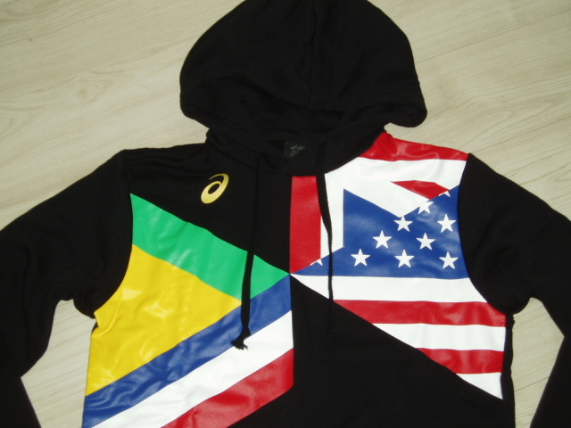 asics(アシックス)のフラッググラフィックスウェットパーカー 新品です。税込み定価:¥8,250 SIZE:M 肩幅:47.5cm 袖丈:62.5cm 身幅:53cm 着丈:70.5cm アシックスのトレーニングウエアです。 コットンブレンドの柔らかな肌触りが特徴的な裏毛スウェットフーディ。 国旗をモチーフにしたグラフィックが大胆に入っています。 品質:本体/綿70%・ポリエステル30%、リブ部分/綿96%・ポリウレタン4% | |||