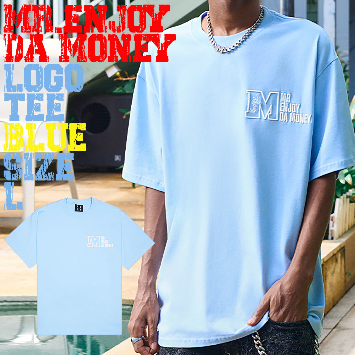 【 MR.ENJOY DA MONEY 】 MEDM 正規品 男女兼用 ユニセックス ビッグサイズ ストリート系 ロゴ 刺繍 Tシャツ LOGO TEE ブルー L