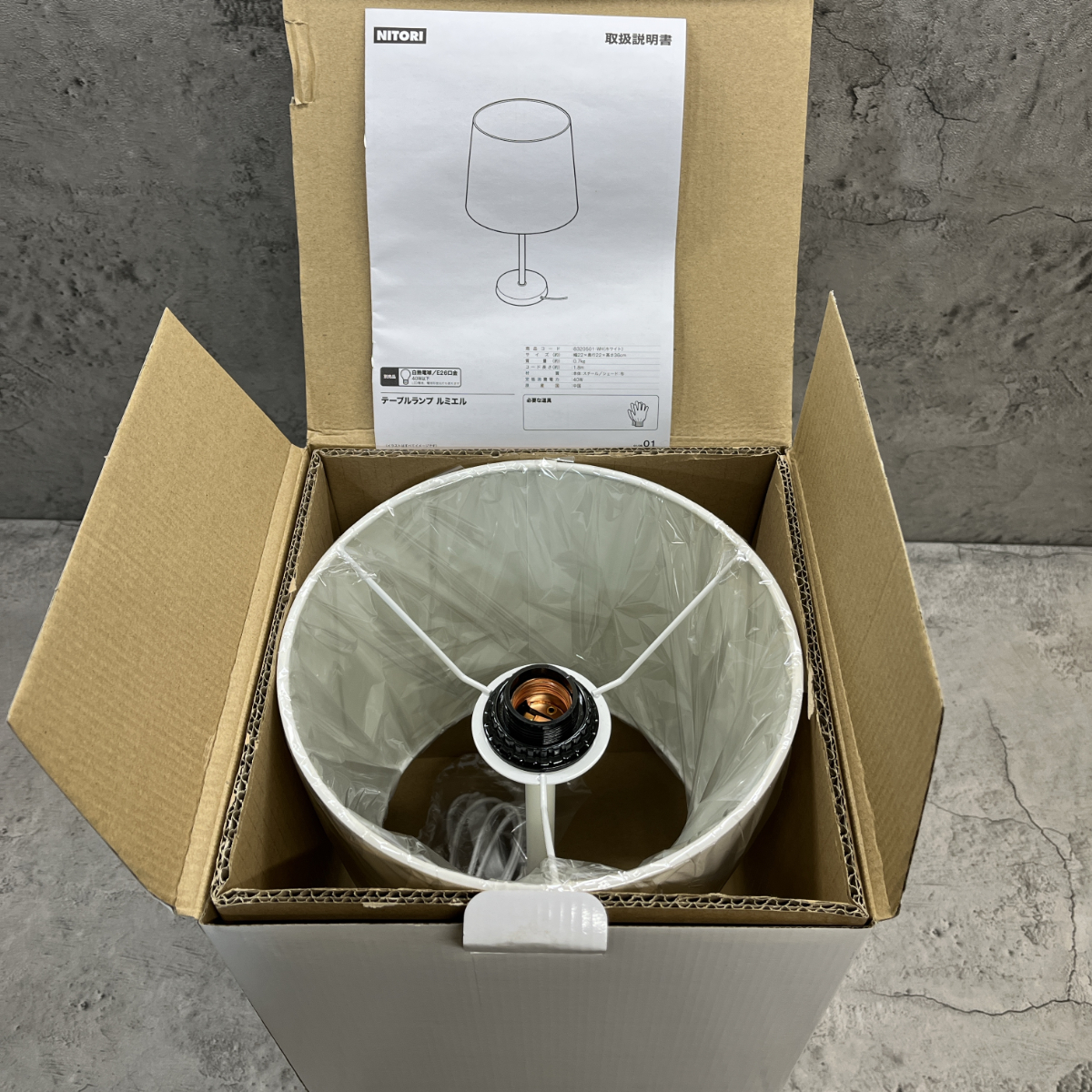 【新品未使用品】NITORI テーブルランプ ルミエル WH シェード 口金 E26 元箱 取説 枕灯 インテリア №23404
