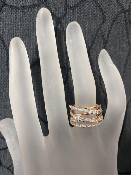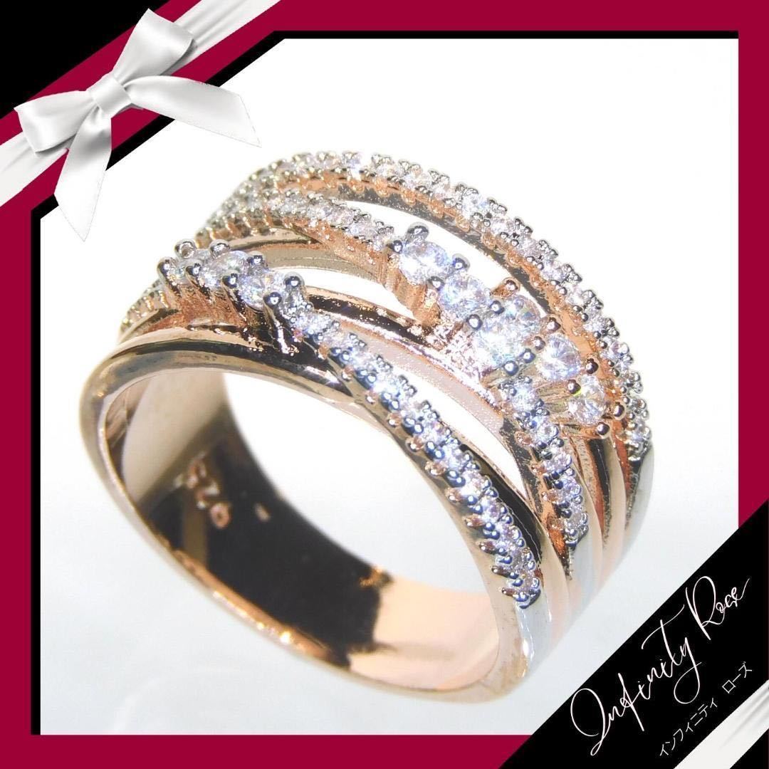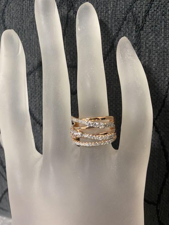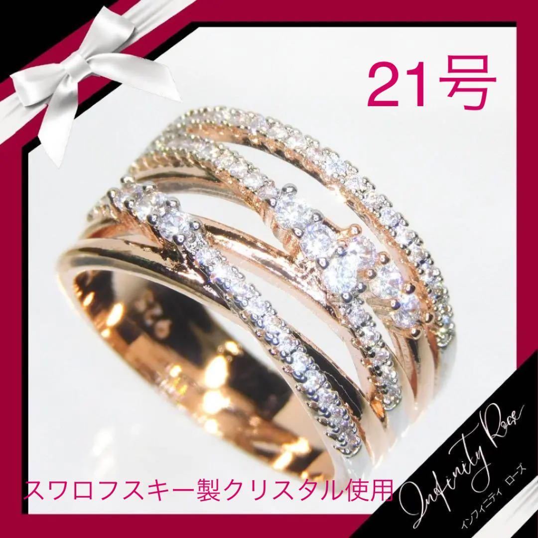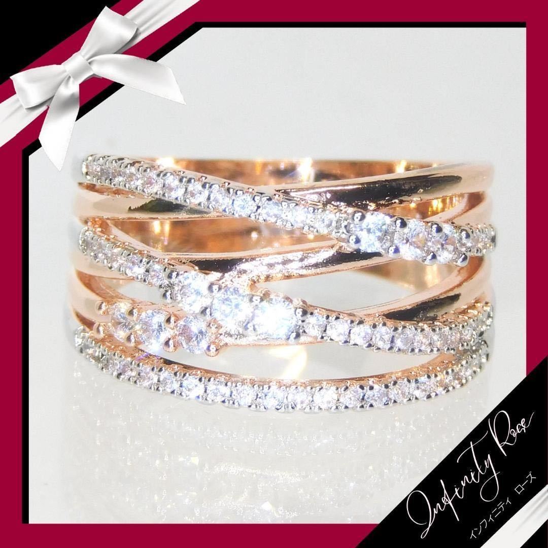 (1124)21号 ピンクゴールド 女の子の為のランダムクリスタル 太リング 指輪 スワロフスキー製クリスタル使用