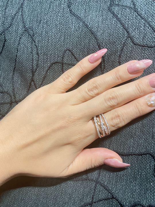 ランダムに配置されたスワロフスキーが太リングなのにとっても可愛らしい印象のデザインに仕上がりました