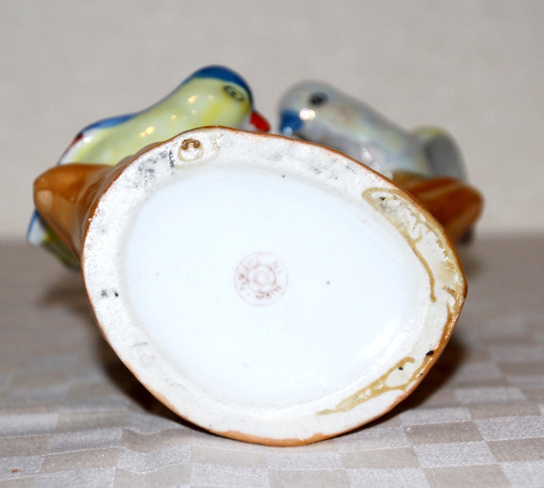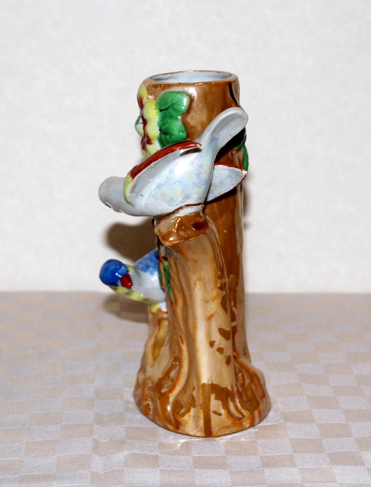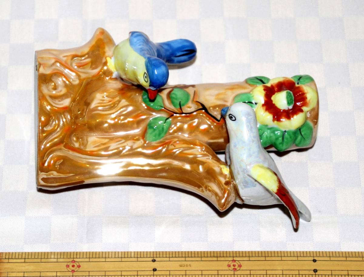 オールドジャパン 2羽の鳥のフィギュアつき 花瓶 ラスター彩 陶磁器 難あり 中古品 ヴィンテージ レトロ アンティーク