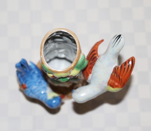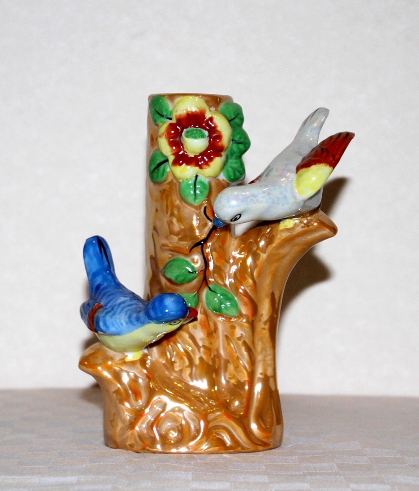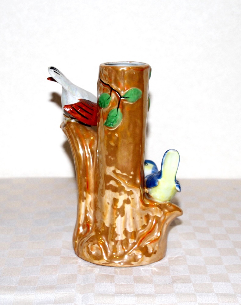 オールドジャパン   2羽の鳥のフィギュアつき  花瓶  ラスター彩   陶磁器   難あり    中古品