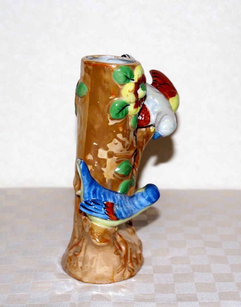 2羽の鳥が木の幹にとまった形の花瓶です。