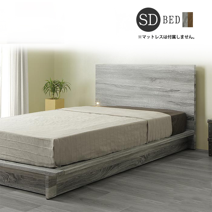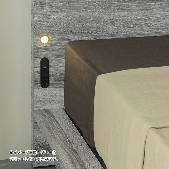 ローベッド フロアベッド セミダブルベッド ベッドフレーム 木製 セミダブル 北欧 LEDスポットライト コンセント グレー
