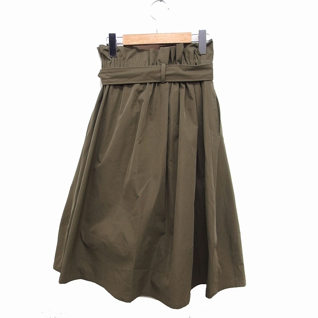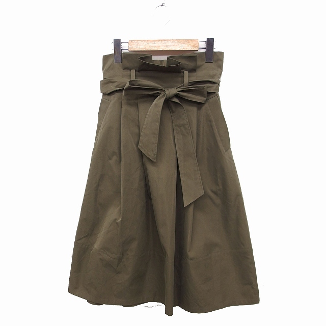 ジュエルチェンジズ Jewel Changes アローズ タック フレアスカート ロング ミモレ丈 無地 リボン 36 カーキ /FT2 レディース