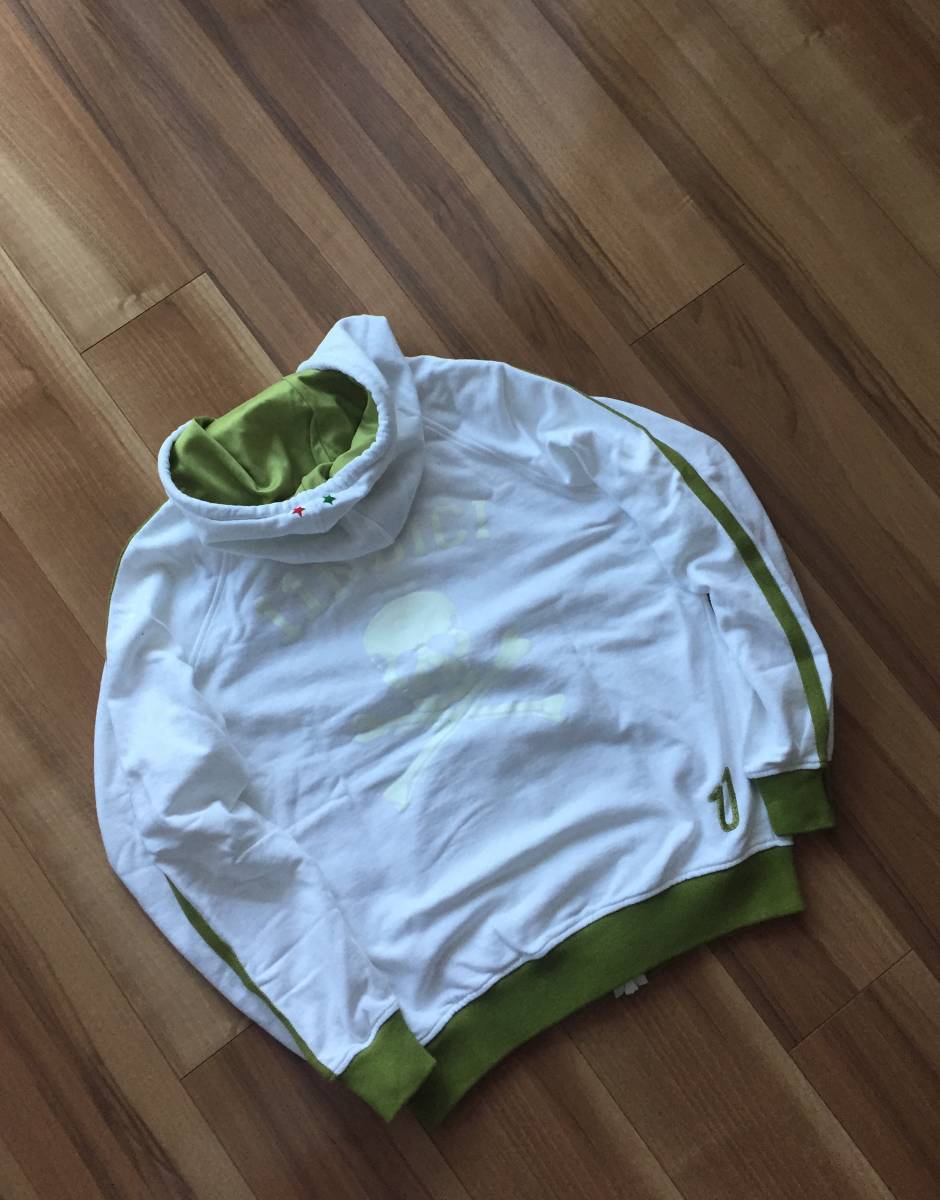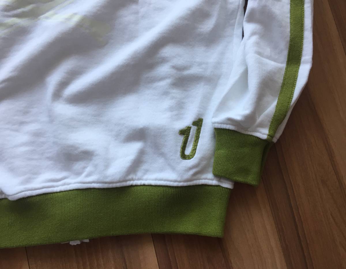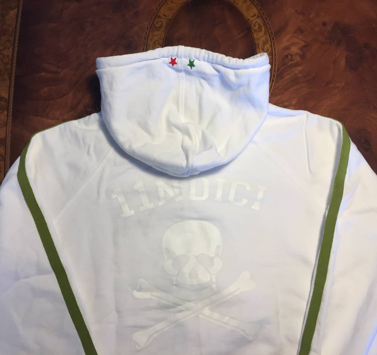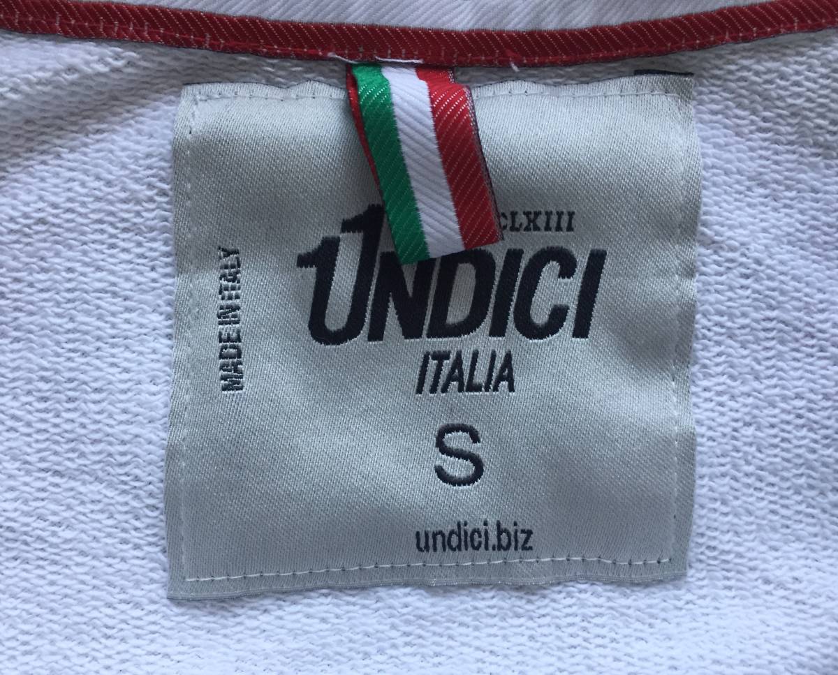 伊製 UNDICI ウンディッチ・ジップパーカー/フーディ・S・ホワイト×グリーン・イタリア製・男女兼用・清潔感・送料750円~