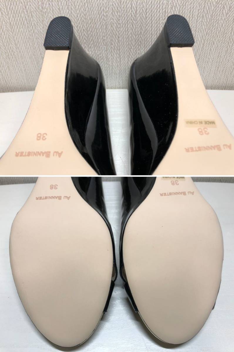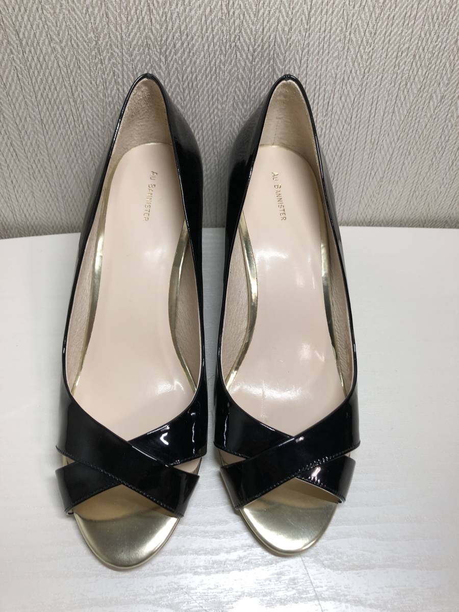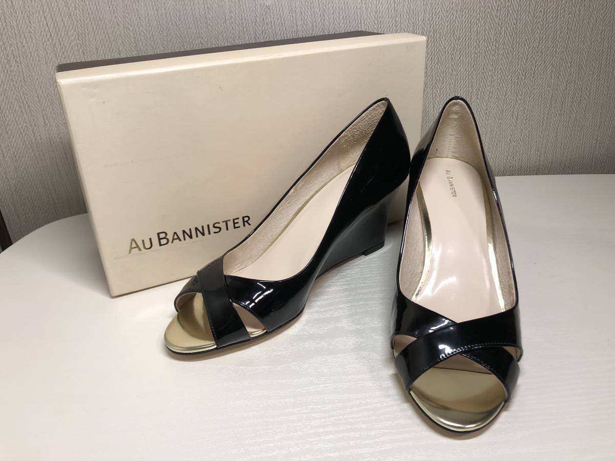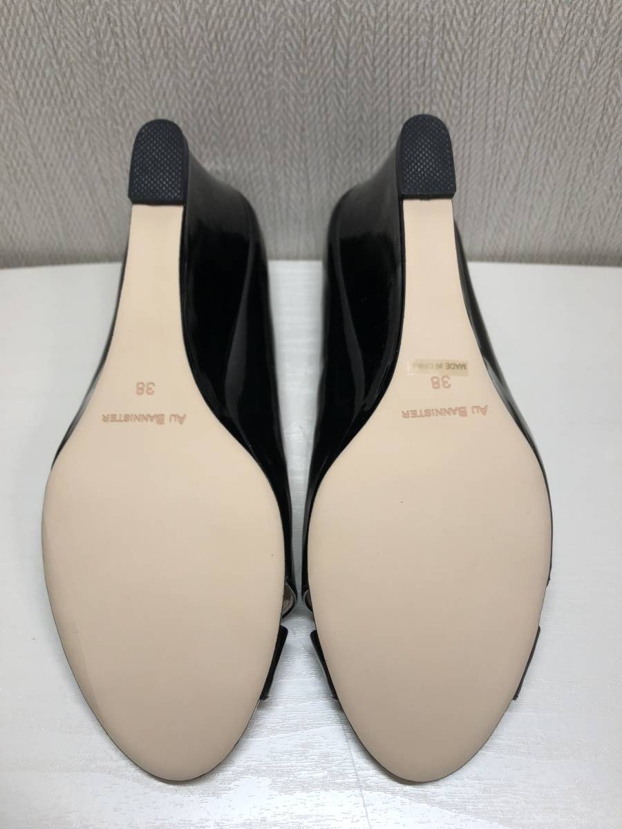 Au BANNISTER オゥ バニスター エナメル オープントゥ ウェッジソール パンプス ブラック 黒 38 ヒール