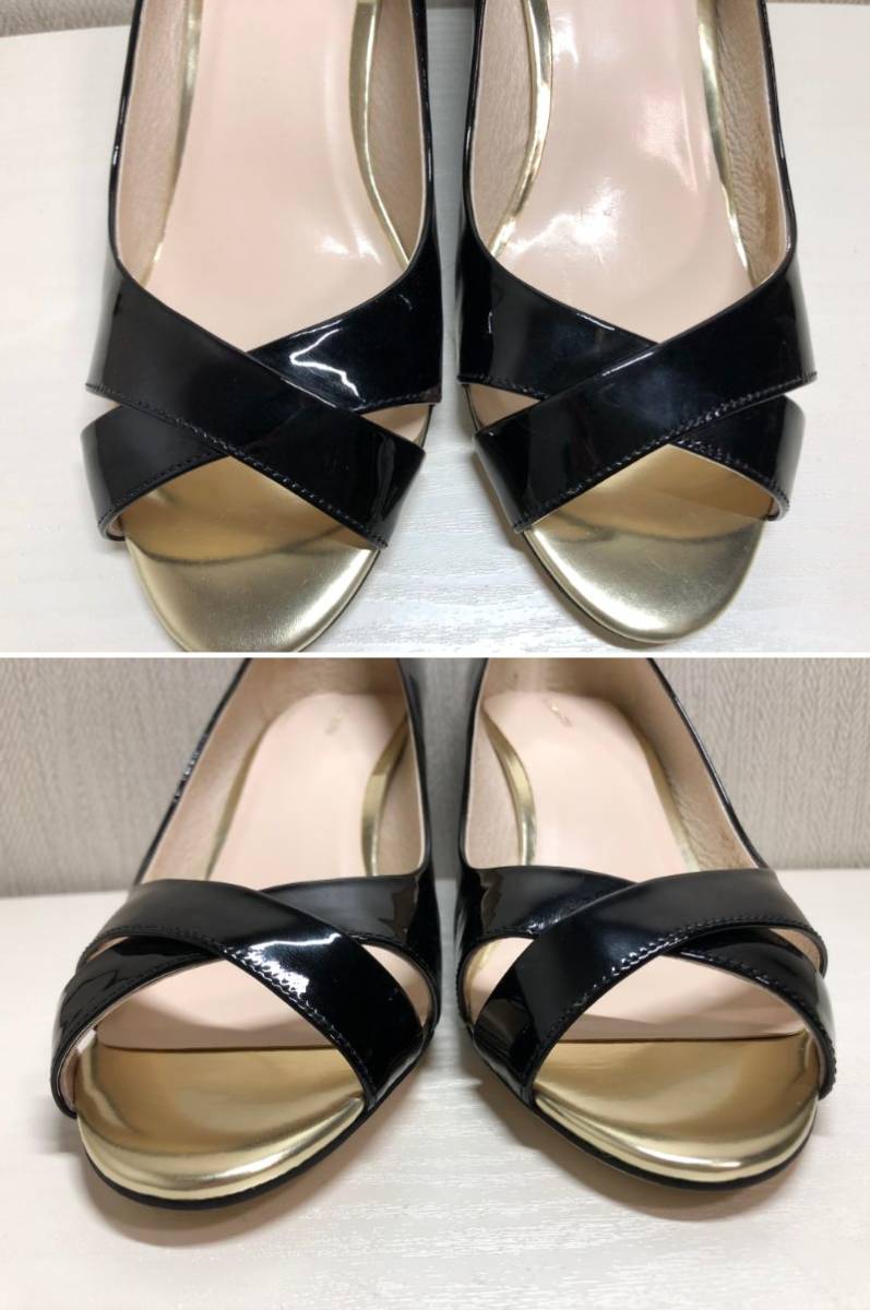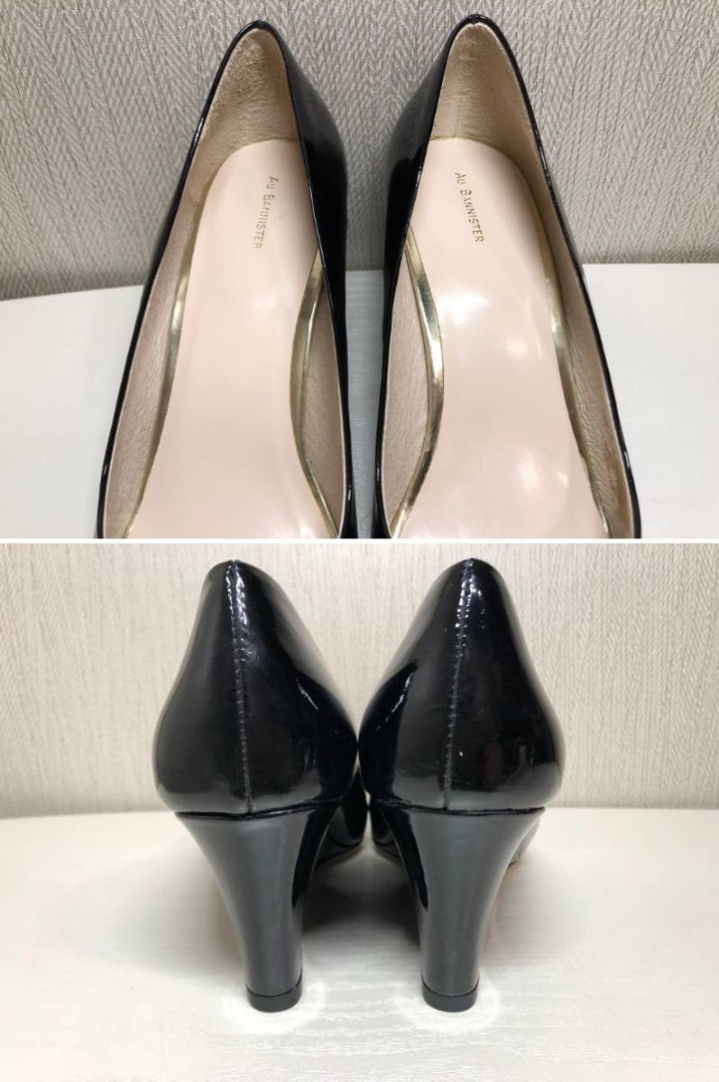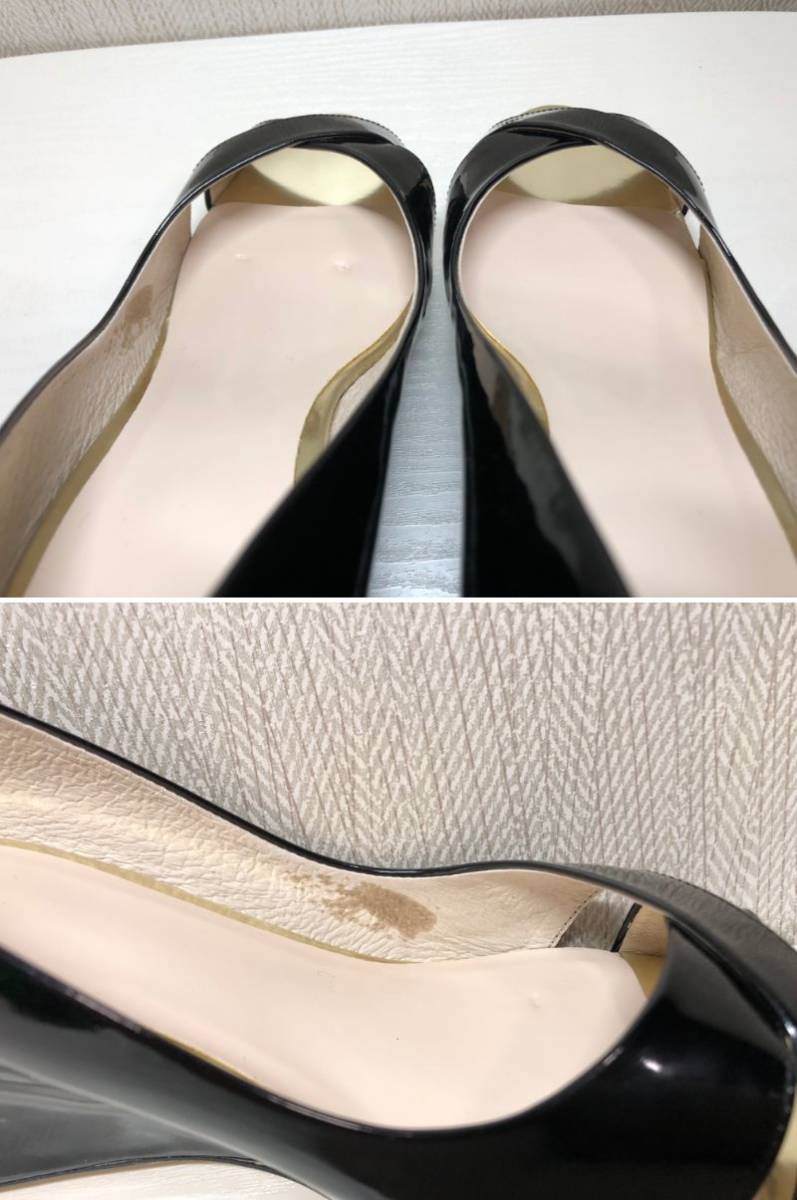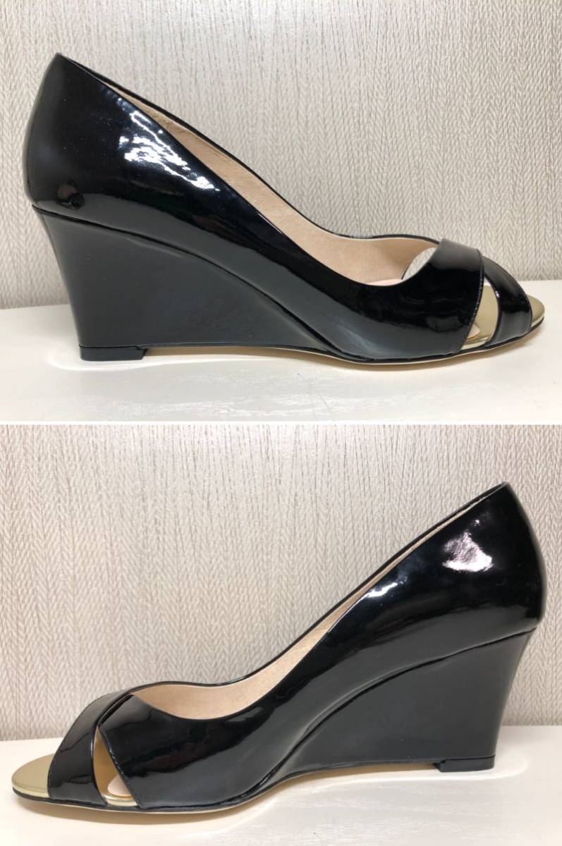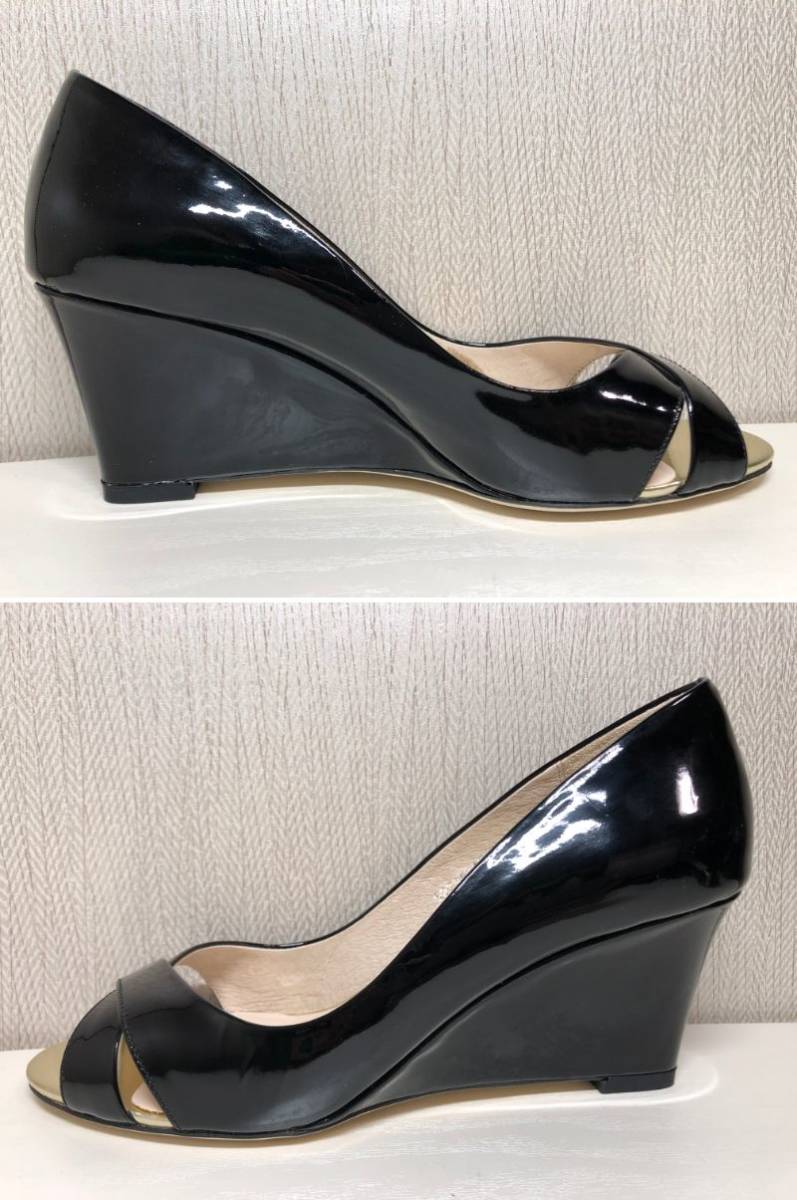 Au BANNISTER オゥ バニスター エナメル オープントゥ ウェッジソール パンプス ブラック 黒 38 ヒール