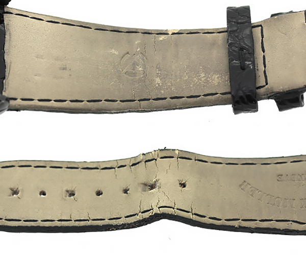 | ベルト | 使用感が強くあり小傷・縁スレ・クセ、裏面に写真のようなひび割れ・黒ずみが見られます。 | バックル | 小傷・薄傷程度。 | |||||||||||||||||||||||||||||||