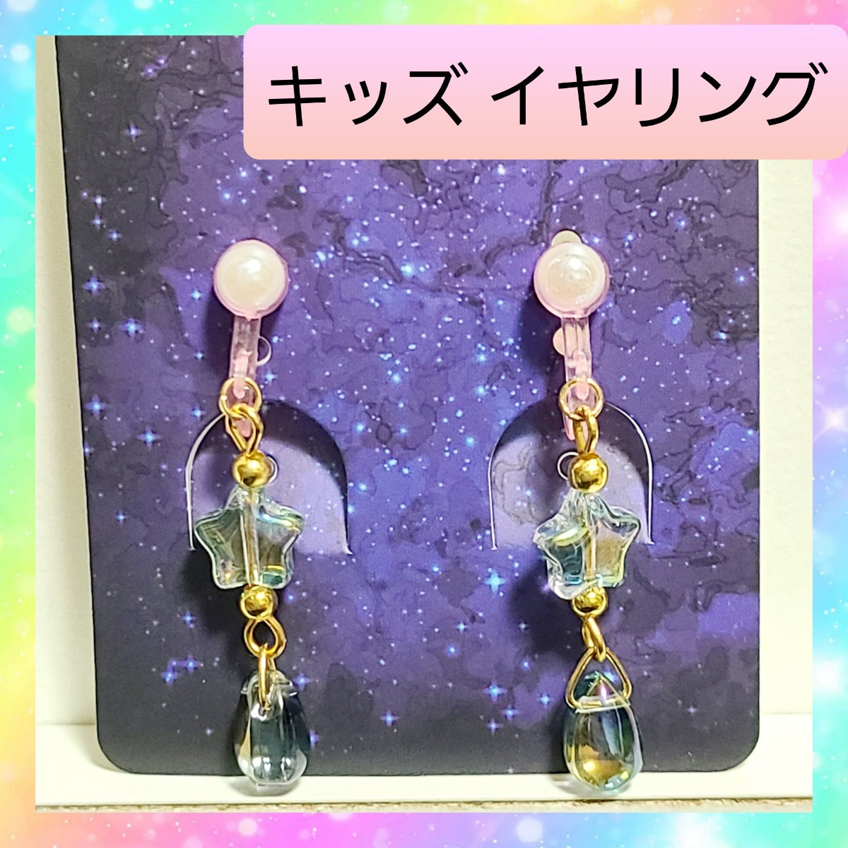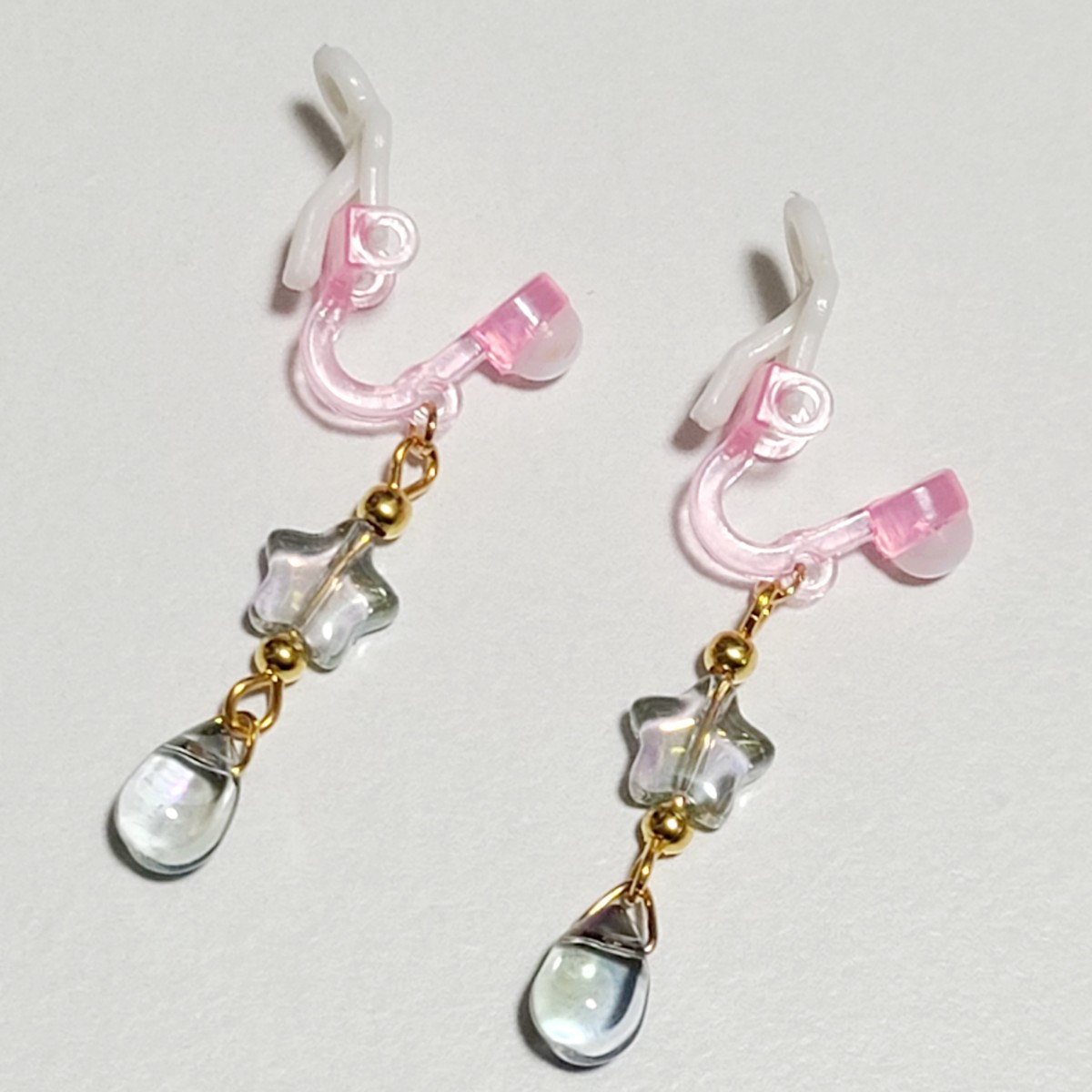 星のガラスビーズを使った流れ星イメージの可愛いイヤリングです