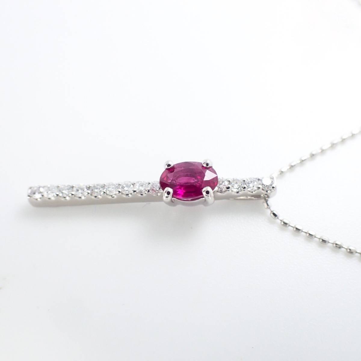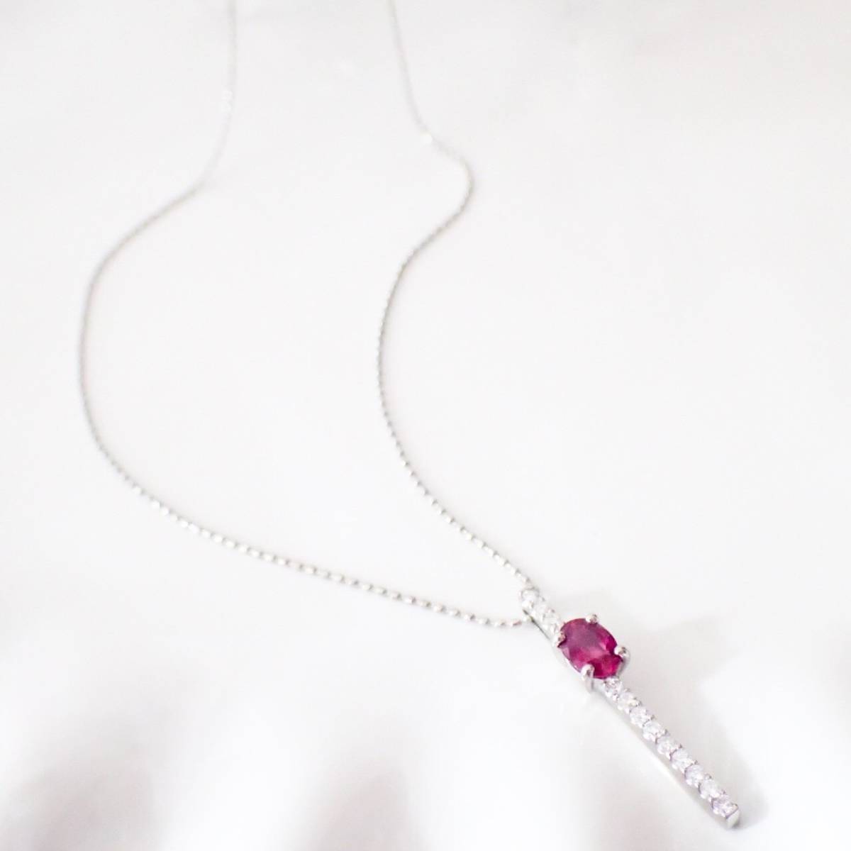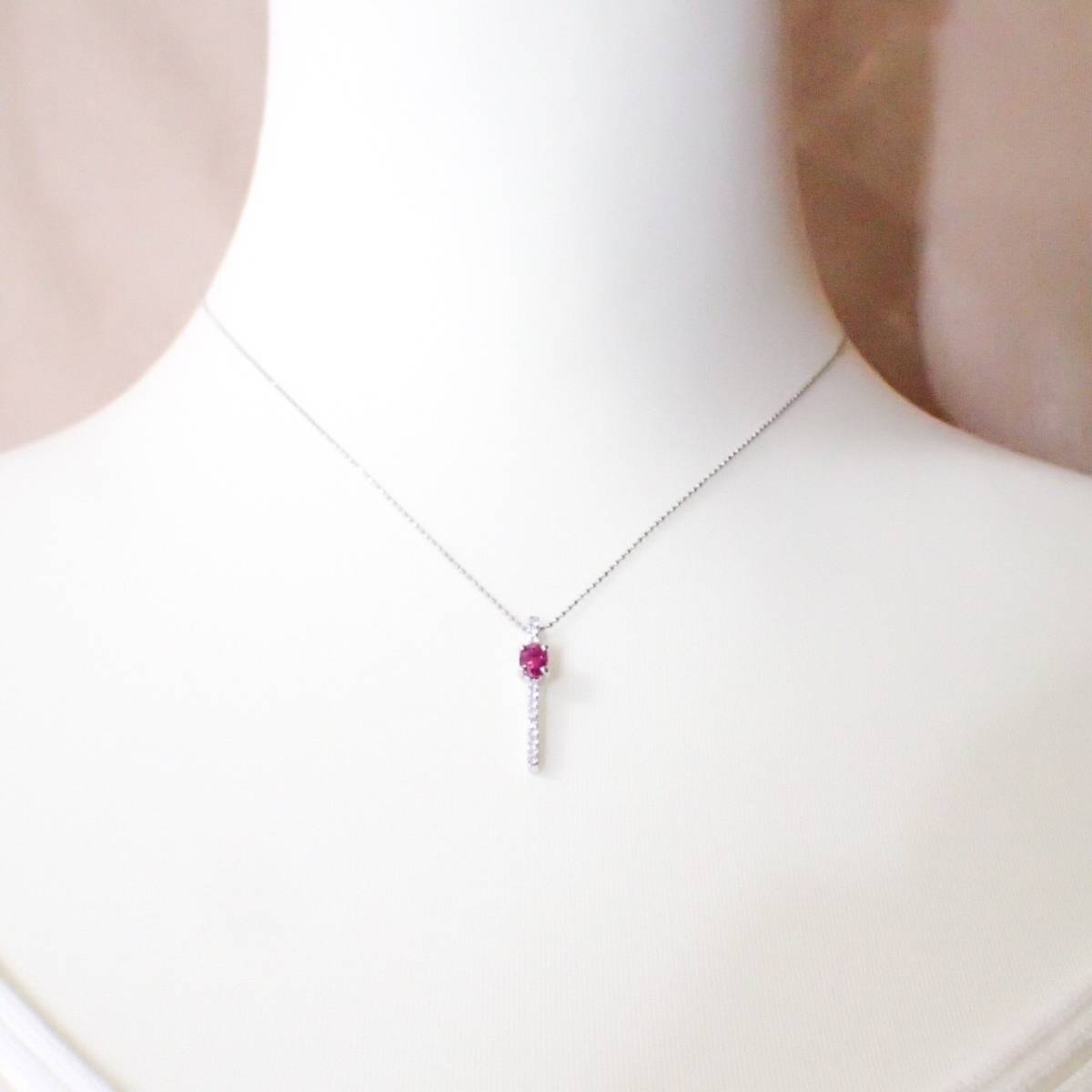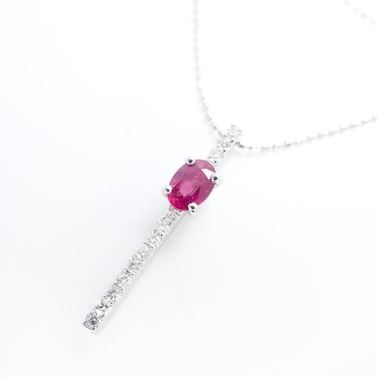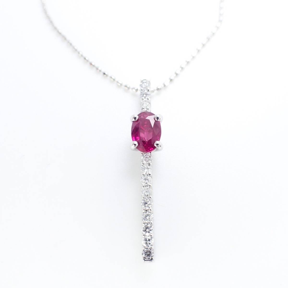 三越のルビーネックレスです メインのルビーは0.53ct、 鮮やかなピンキッシュレットの色味と テリが上質な1石になります 透明感の高いダイヤモンドのライン上にルビーが浮かぶように セットされた洗練のデザインがデコルテをすっきりと 見せてくれます 三越ジュエリーの上質なお品となります |