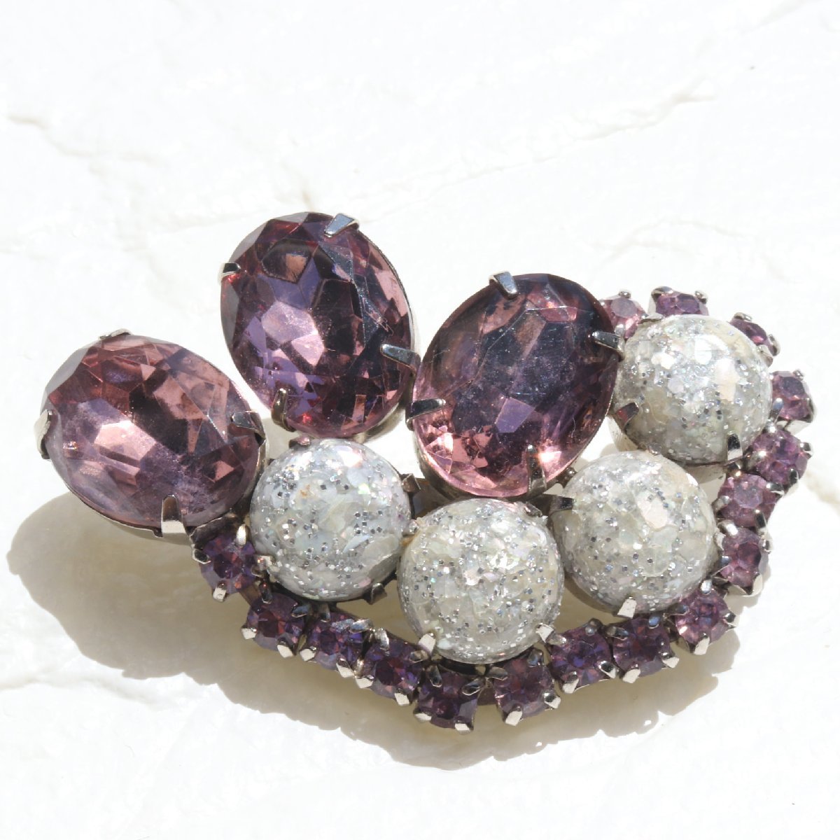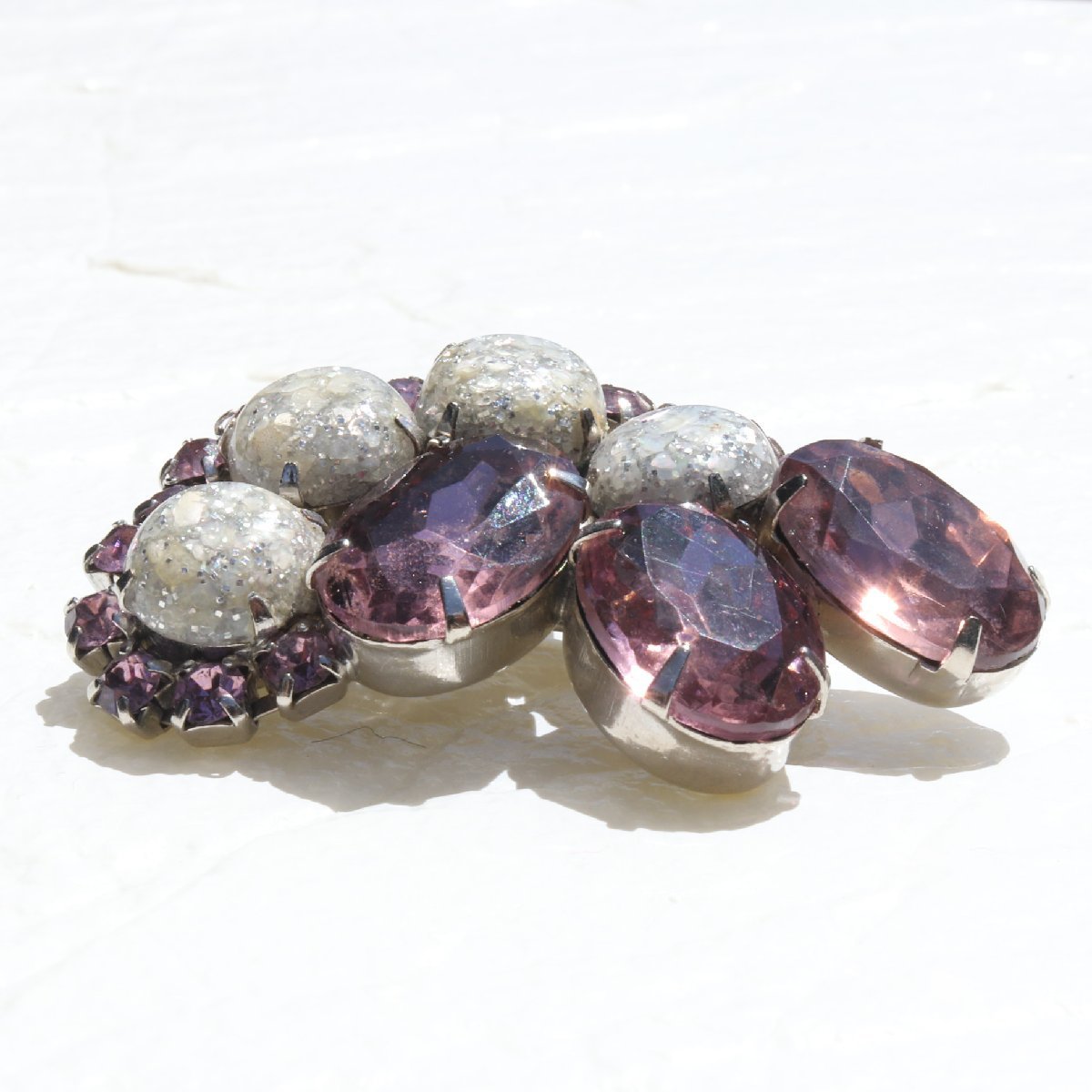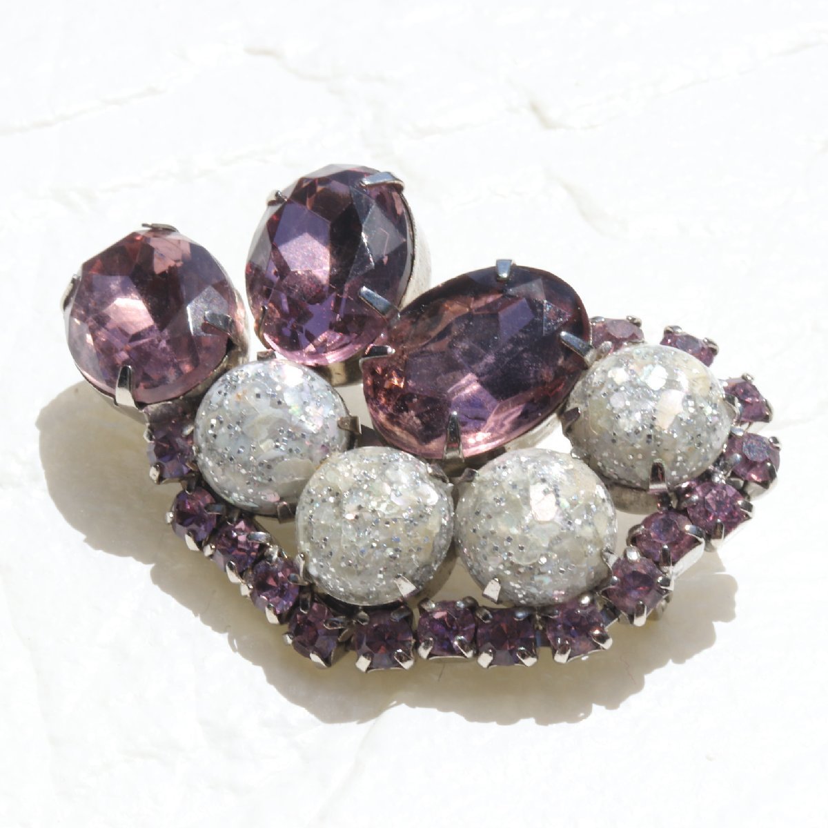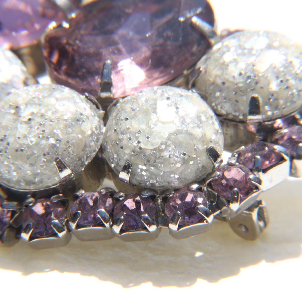 ヴィンテージ パープル×シルバーラメストーン ブローチ