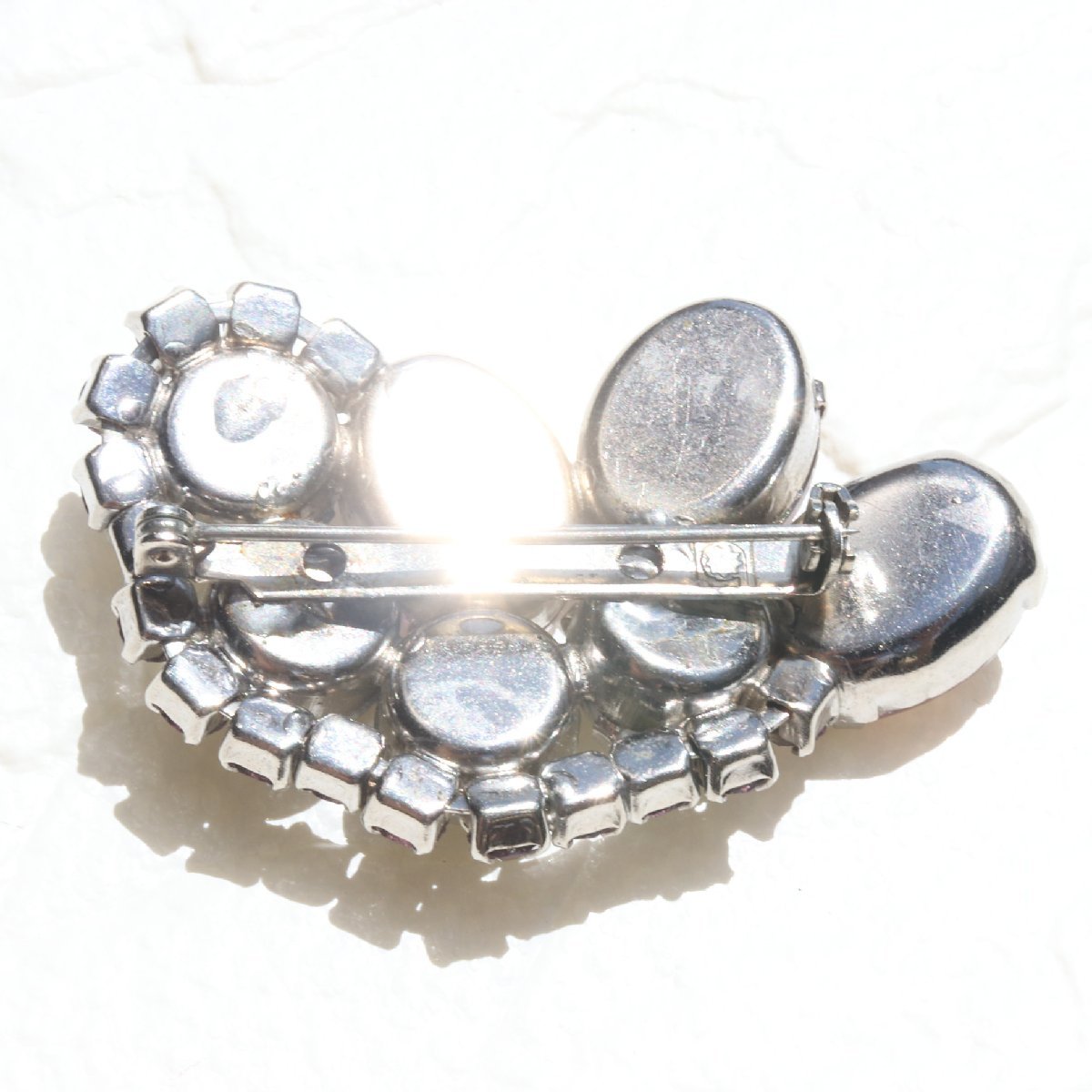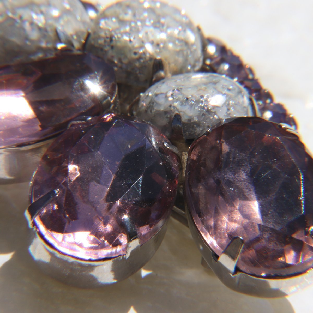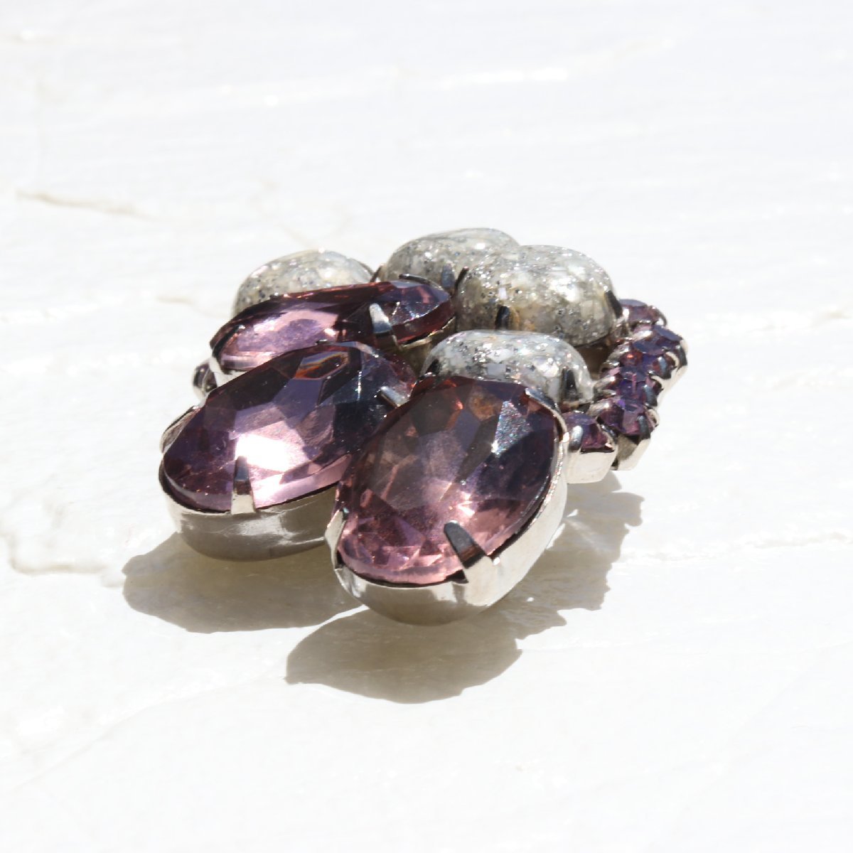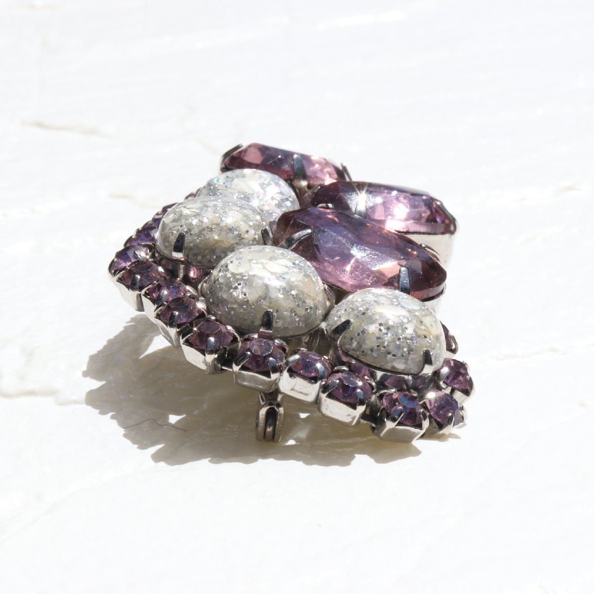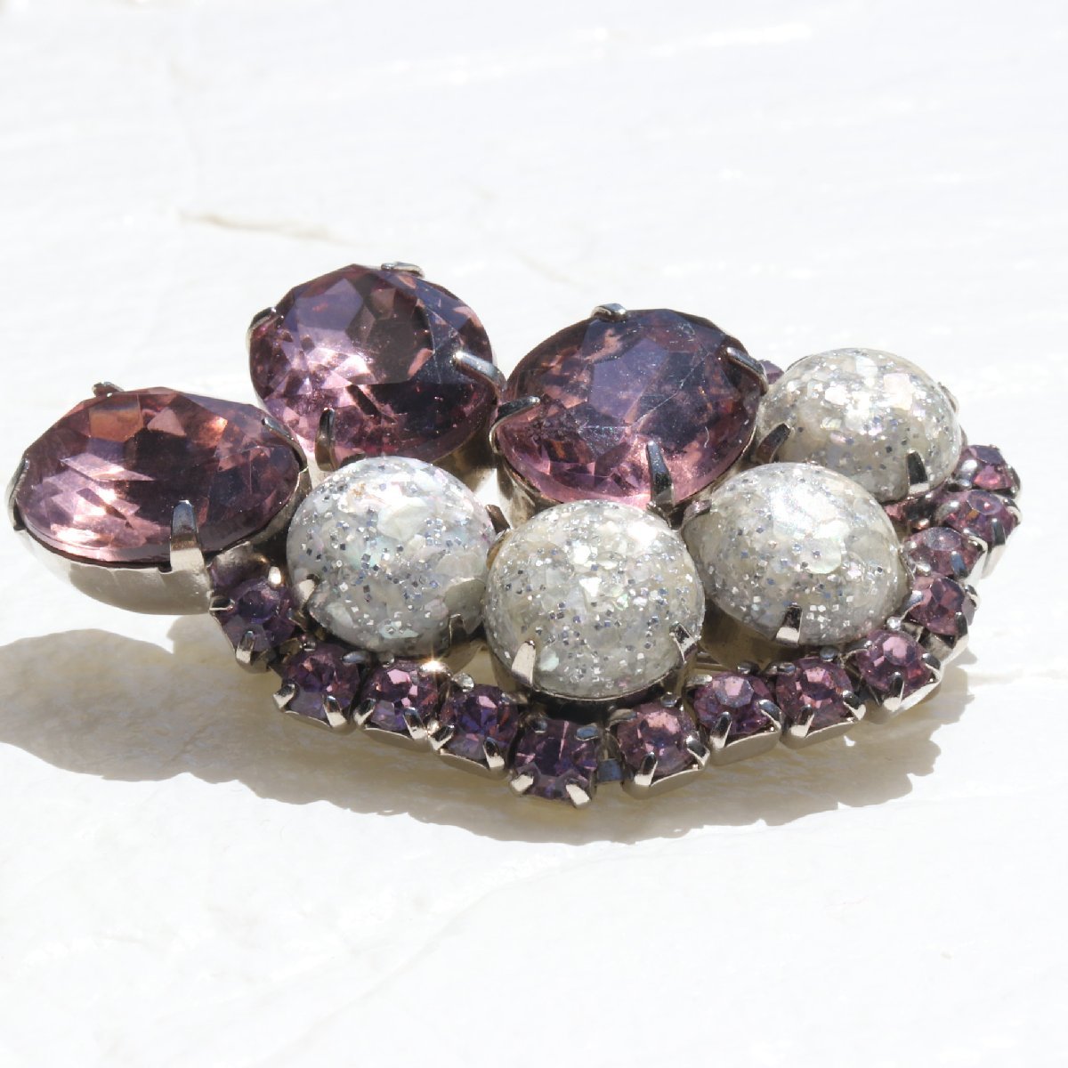 ヴィンテージ パープル×シルバーラメストーン ブローチ