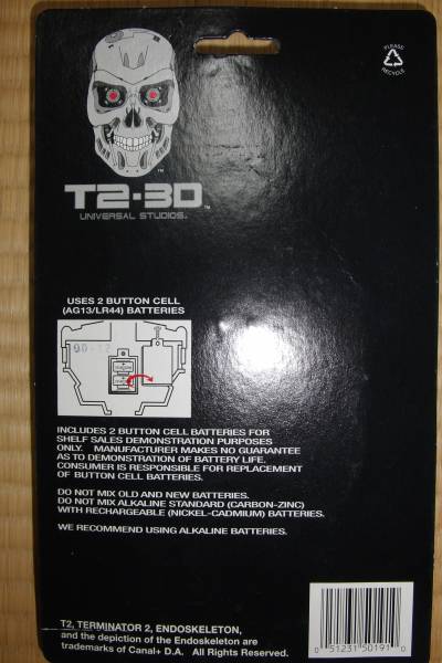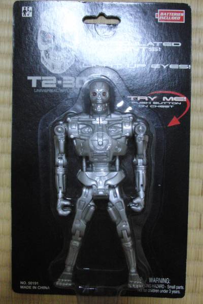 ターミネーターのエンドスケルトンのフィギュアになります。胸部のボタンを押すと目のライトが点灯するギミックがついています。台紙に英語でUNIVERSAL STUDIOSと記載されており、USJで販売していたもののようですが、詳しいことはわかりません。レトロな感じのするフィギュアで好みが分かれるのではないでしょうか。コレクション整理のため出品します。探していた方はいかがですか。何か質問があれば遠慮なくどうぞ。ノークレーム、ノーリターンでお願いします。発送は仕事の都合上、クロネコヤマトの送料着払いのみとさせていただきます。