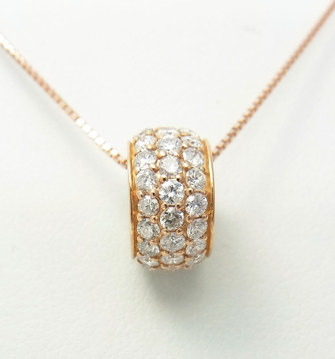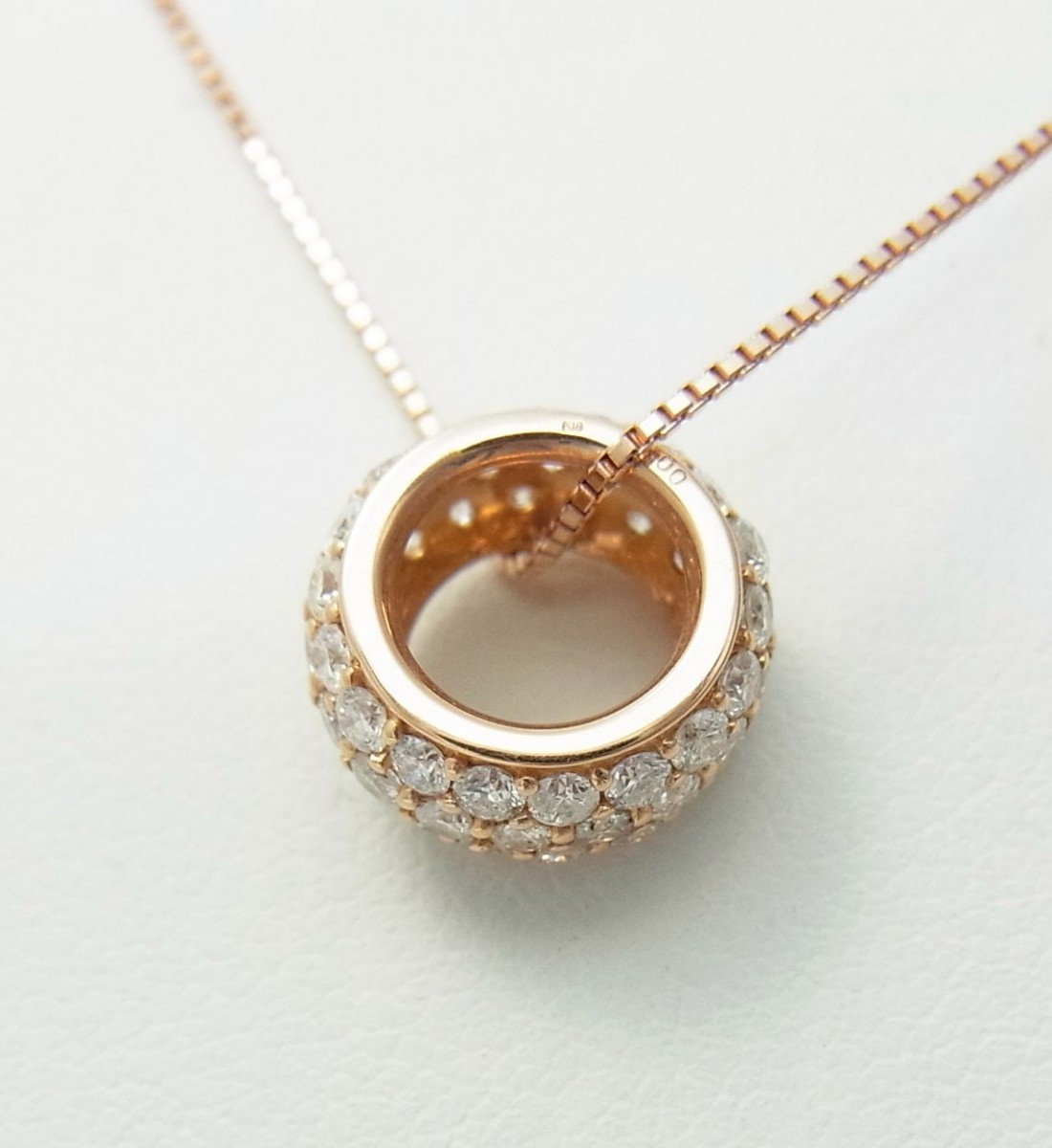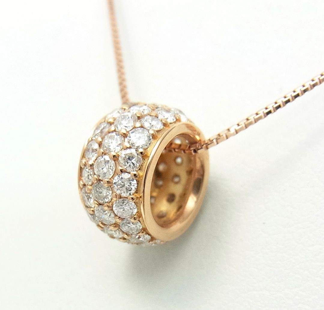 ぐるっと一周天然ダイヤモンド合計1ct/パベ留/パヴェ/18金ピンク製ペンダントネックレス/商品動画あり/送料無料