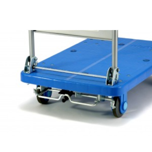 ペダル踏み式により、後車輪2輪が同時にロックします。解除ペダルでロックがはずれます。