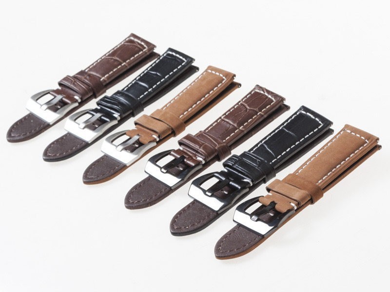 汎用タイプ、腕時計26MM用のワニ革風仕上げの本革バンドストラップです。