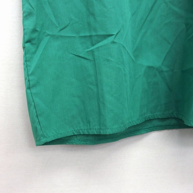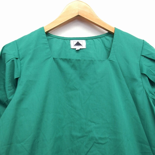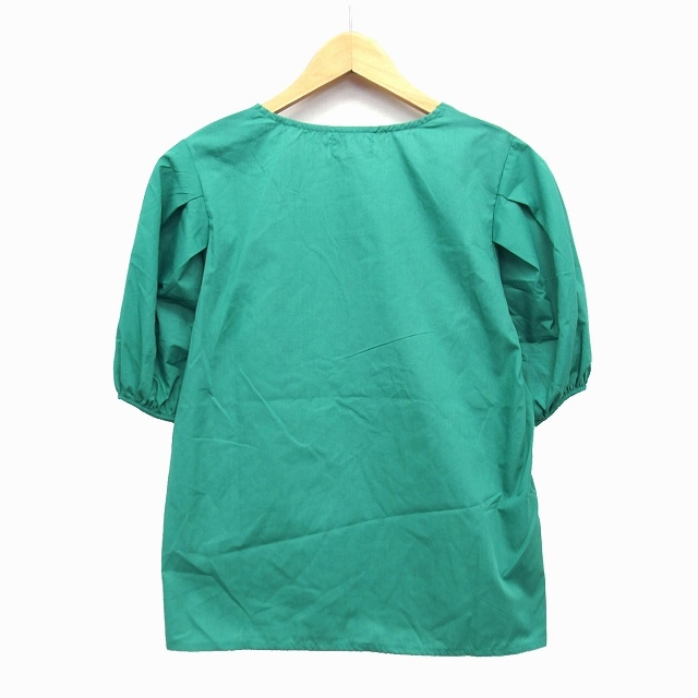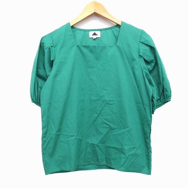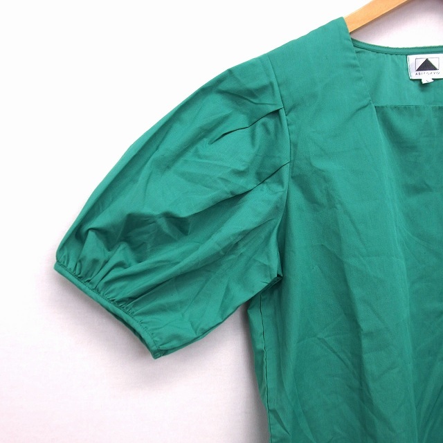 アビトーキョー ABITOKYO カットソー ブラウス 無地 シンプル 五分袖 スクエアネック タック コットン 綿 L グリーン 緑 /HT9 レディース