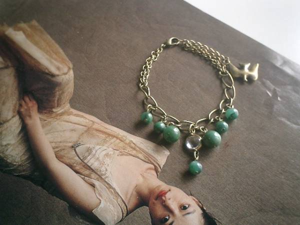 初夏のクローゼット・・シリーズです♪ジャンヌの首飾り・・シックなグリーンアベンチュリンのブレスレットです♪深い緑色のアベンチュリンにステンドビーズをトップに合わせてアンティークな表情です♪グリーンアベンチュリンは6ミリ、8ミリの丸玉、ステンドビーズは8ミリ位です♪長さは16センチ+アジャスター6センチで最長22センチ位です♪お揃いのネックレスも出品しています♪シンプルで飽きのこないいつまでも着けられるデザインを考えて作りました!ハンドメイドをご理解頂いてノークレーム、ノーリターンでお願いします