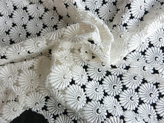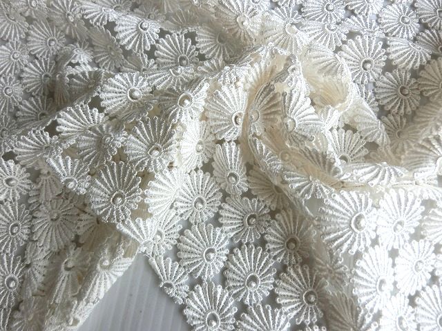 | 生成オフ白★花モチーフケミカルレース生地 | |||