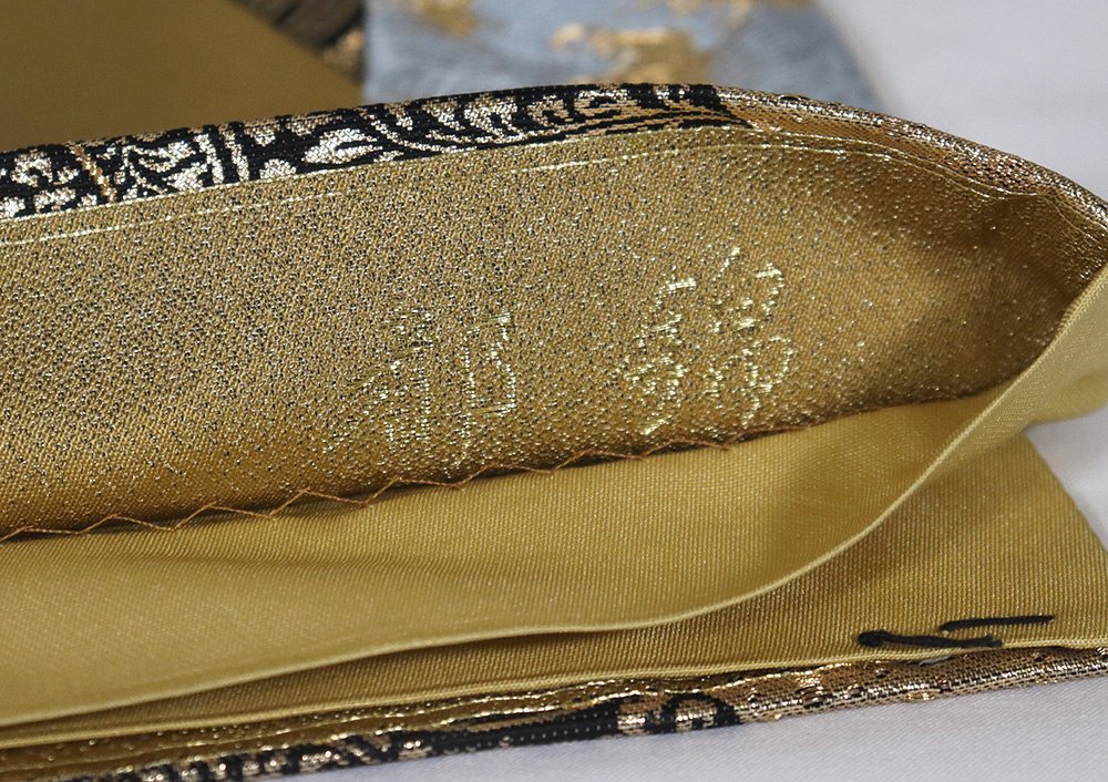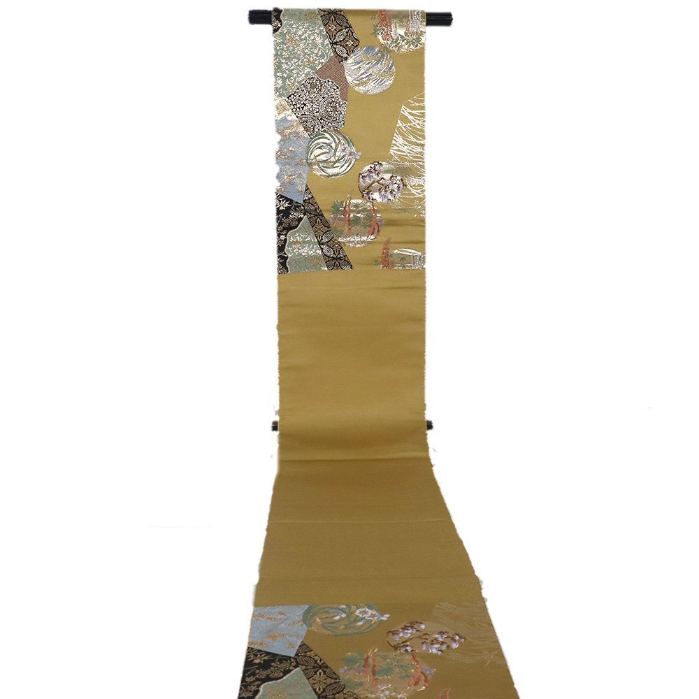 | 色・柄 | 西陣織袋帯 都錦 金茶・黒・金箔・緑地 花丸文 稲穂・藤・木蓮・水仙・華文・花菱・七宝文 (写真では上手く色が出ない場合があります。ご了承下さい) ※お使いのディスプレイの種類や設定の差により 実物の色と画像の色が少々異なることもございます。 写真の枚数が多いので一度パソコンでご覧ください。 |