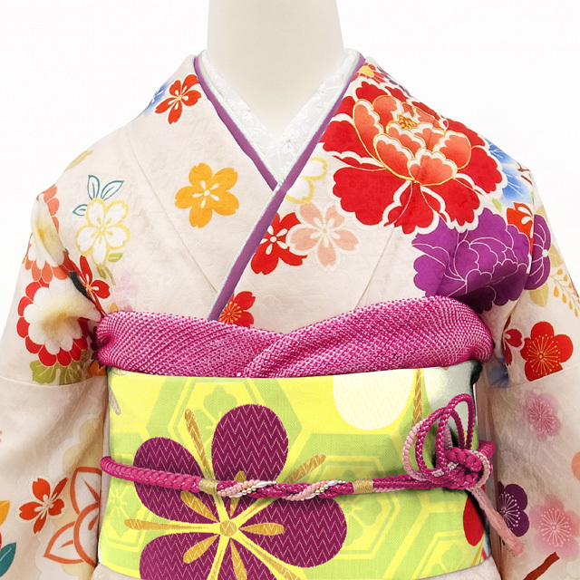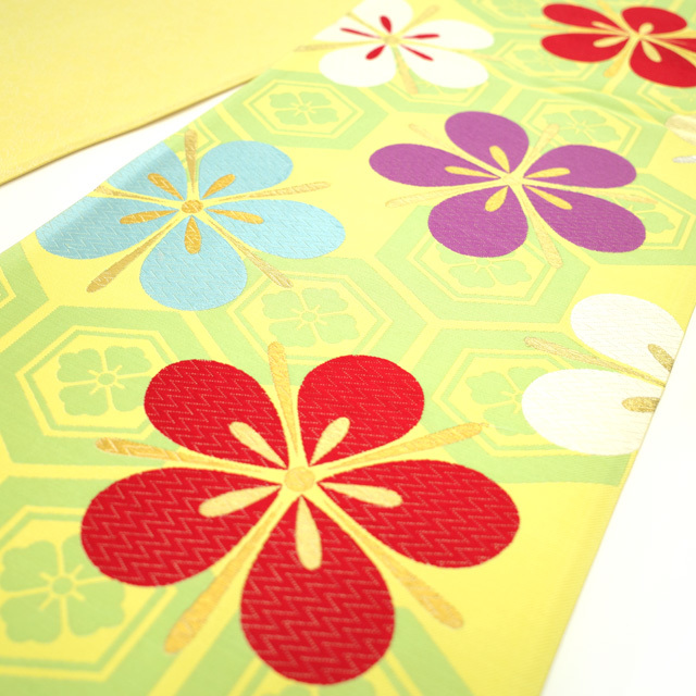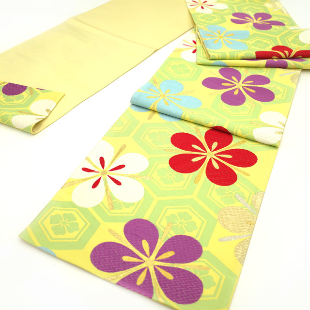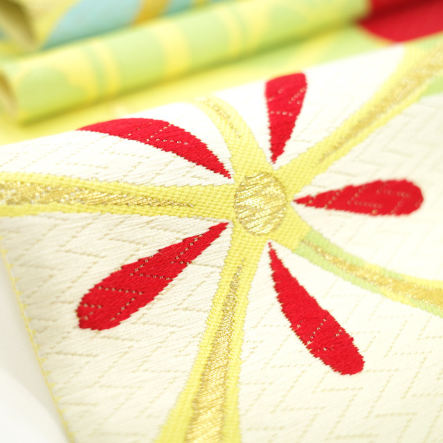 【中古】 すごい値! 袋帯 振袖用 リサイクル 京都 西陣 正絹 金糸 黄色 花 亀甲花菱 六通柄 フォーマル 仕立て上がり 春 秋 冬 成人式 二十歳 20歳 結婚式 など 販売 購入 綺麗 美品 リユース すごいね みやがわ neb00551
