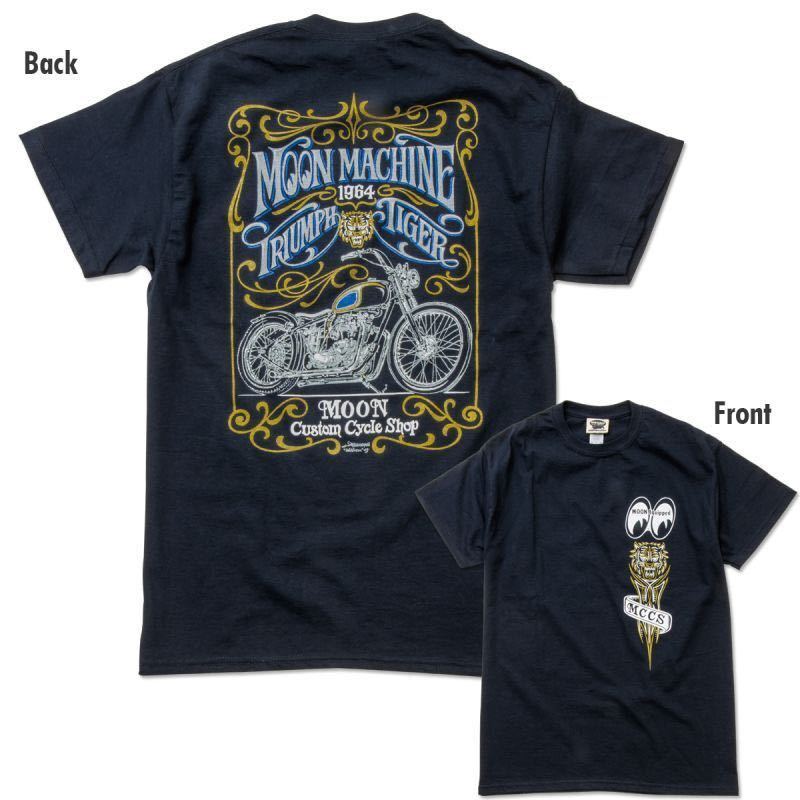 送料込み Mサイズ MOONEYES MOON Machine Tシャツ ムーンアイズ MOON Custom Cycle Shop 1964 Triumph 650 Tiger トライアンフ バイク