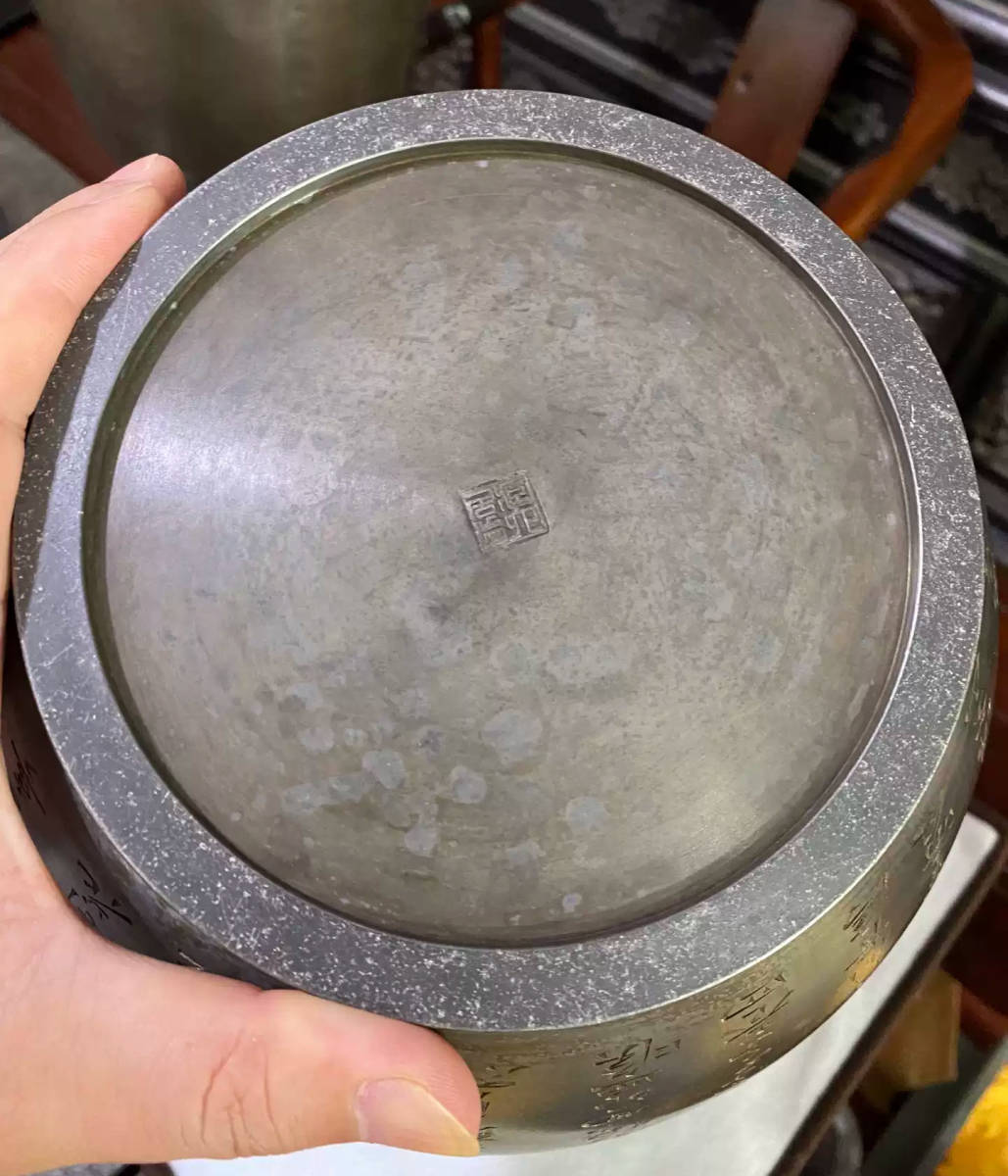 在印:藏六居造、味原仙子刻 寸法:高さ36cm、幅26cm、計2枚 状態説明:この茶心壺は錫製で、胎体は厚くて質は併んで、皮殻は古くて、色は灰色で明るい、内部は滑らかで平らで、容量が巨大きい、ふたが二重になっており、厳密に閉じて、貯蔵性が良くて、 古めかしい雰囲気がいっぱいだ。全体の制作はきちんとしていて、保存状態がよくて、品の相は一流です、具体的な保存状態は写真を見てください。 掲載写真をご確認ください。 ※モニターの具合により実際の色と異なる場合がございます。ご了承ください。 | |||