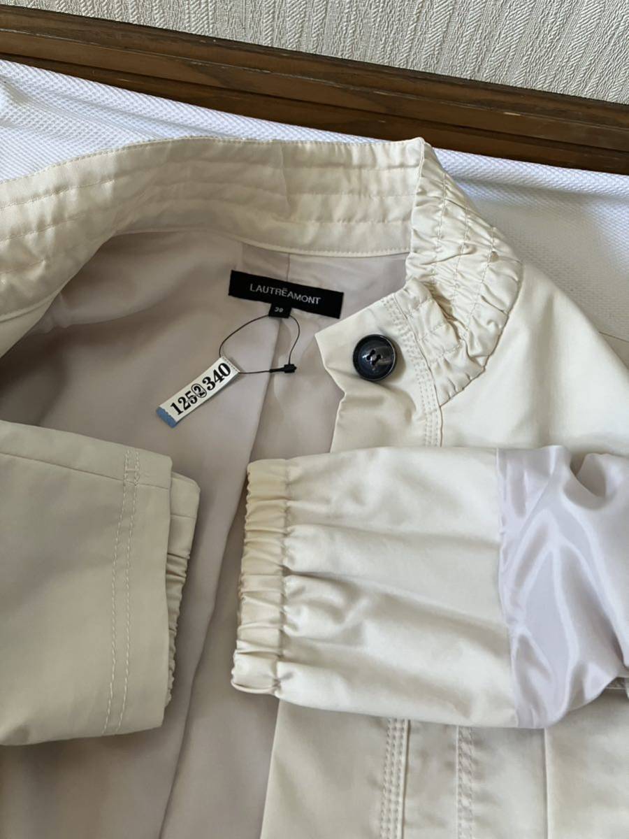 ロートレアモンのブルゾンジャケットです。ウエストはドロスト。お袖口は2重になっています。内側はゴム入り。前は隠しボタンタイプ。【サイズ】38。丈54肩幅35袖丈57脇下身幅44センチくらい。【素材】綿60ポリエステル40パーセント。裏地ポリエステル。【状態】10回くらい着てしばらく保管していました。着用感はありますが目立つようななダメージもなくまだまだご愛用頂けるかと思います。【発送方法】ゆうパケットポスト。コンパクトにたたみます。