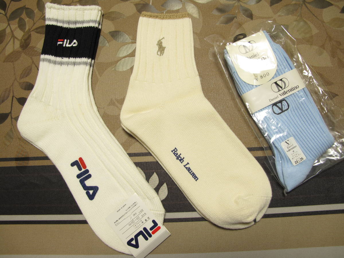 新品 3足セット ブランド 靴下 ソックス 23~25cm ラルフローレン アイボリー フィラ 日本製 白 ダニエル ヴァレンチノ 水色
