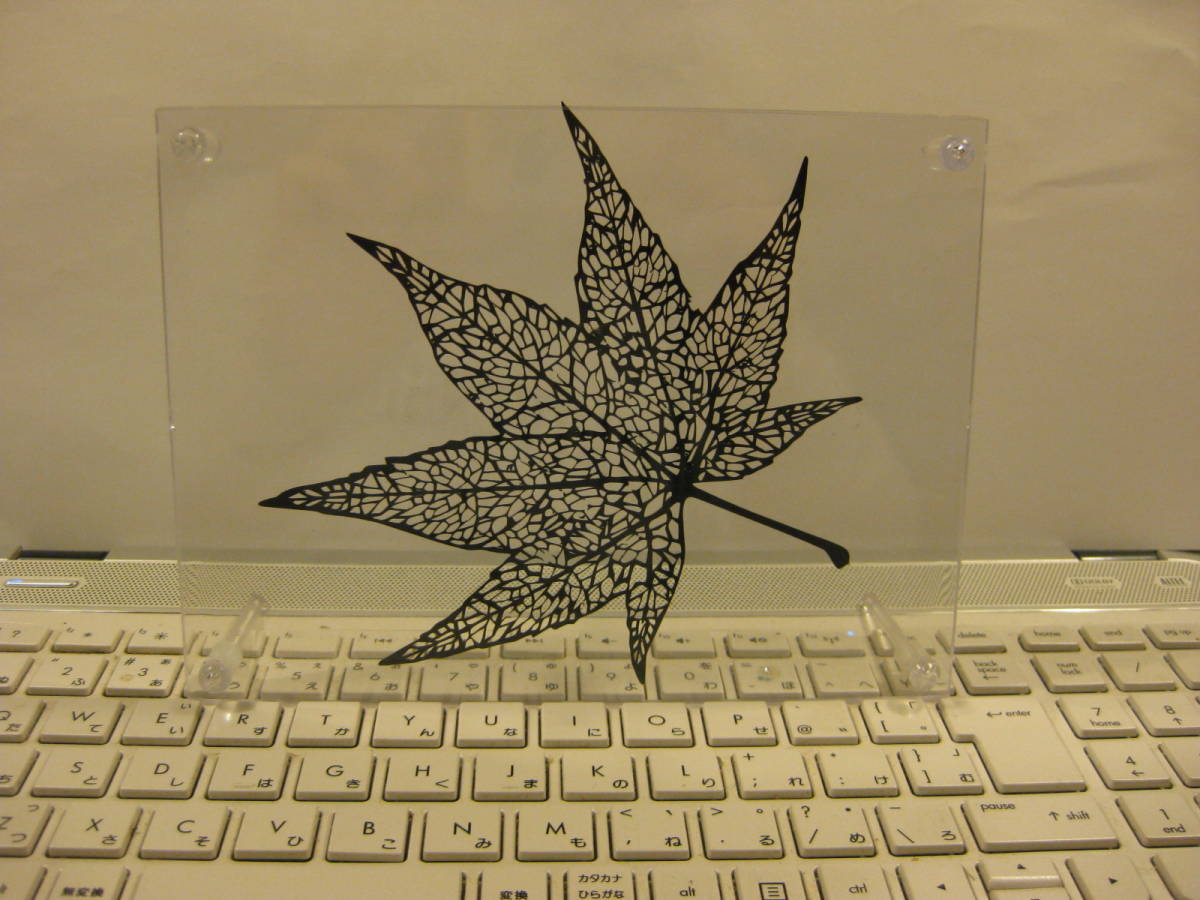 立つ切り絵 葉っぱ 葉脈 壁飾りにも