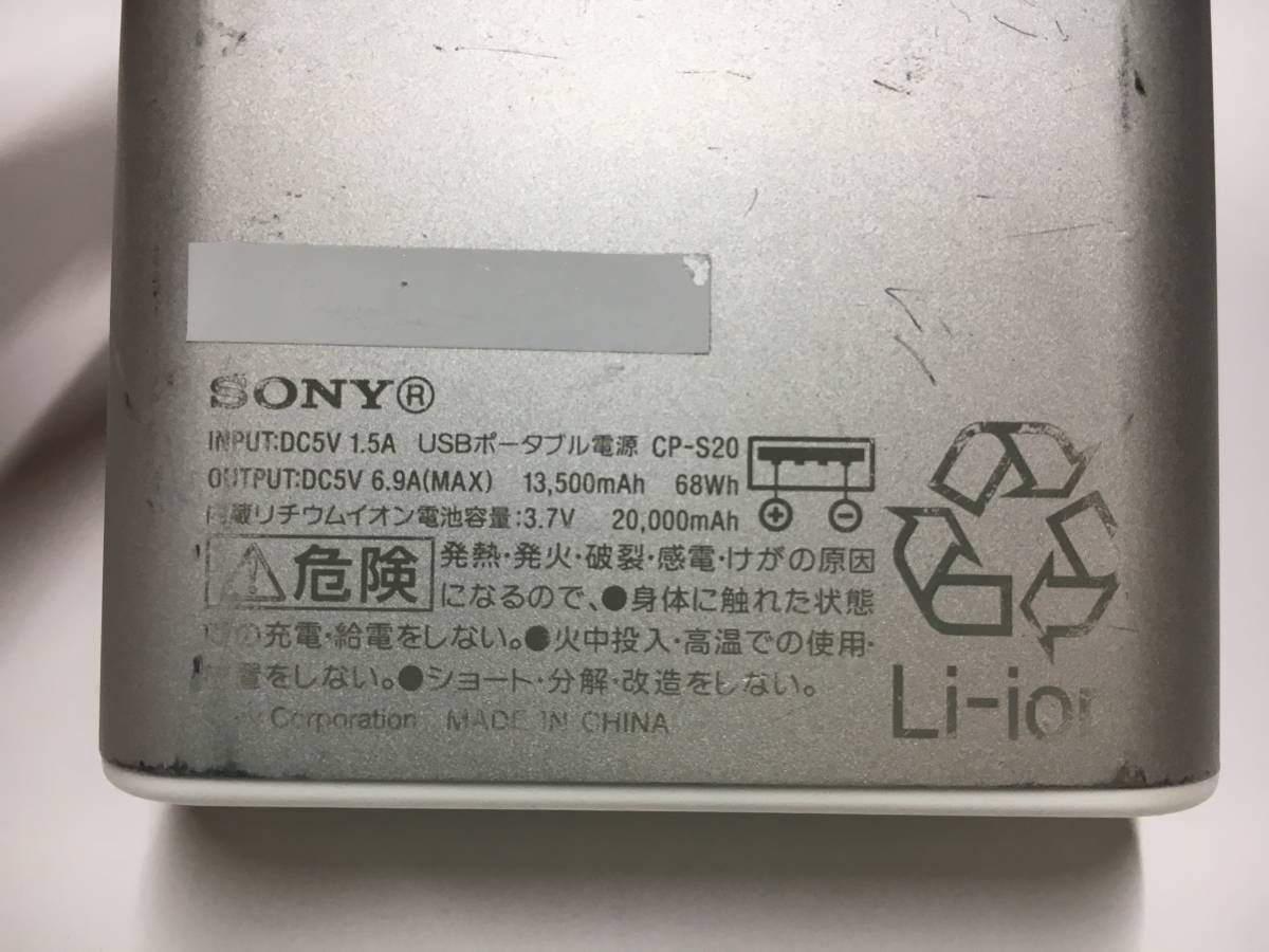 SONY USBポータブル電源 CP-S20 モバイルバッテリー 3.7V/20000mAh アルミボディ 中古 | |||