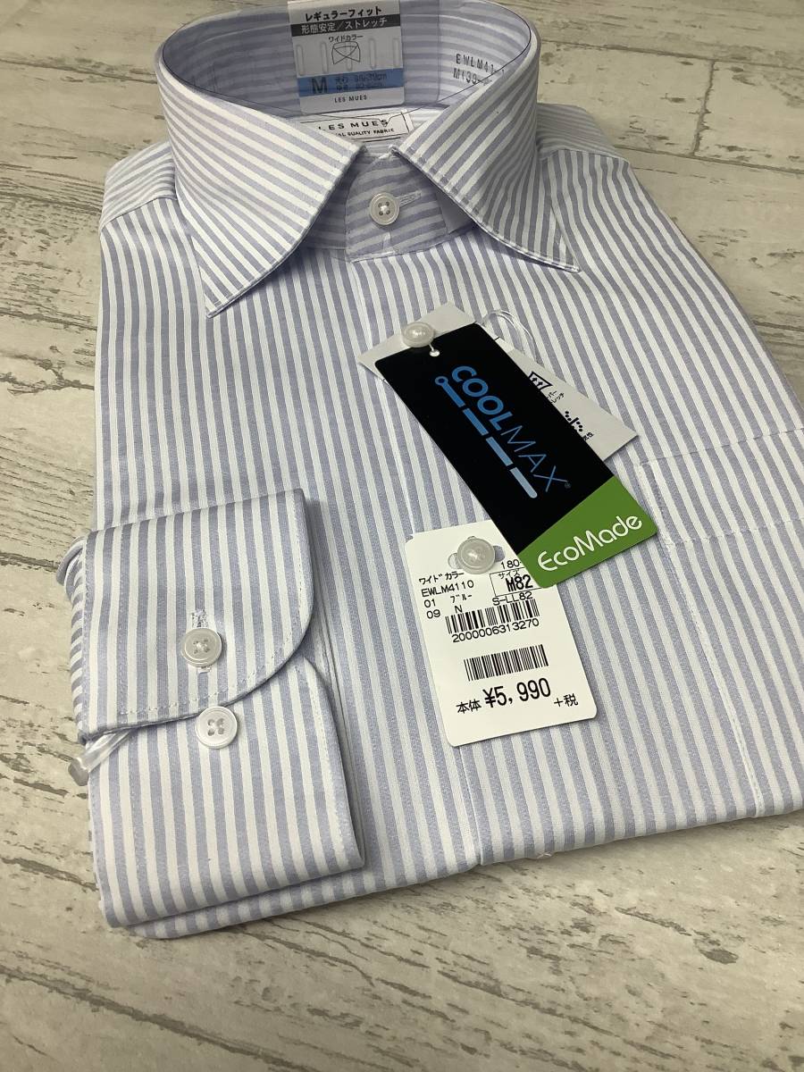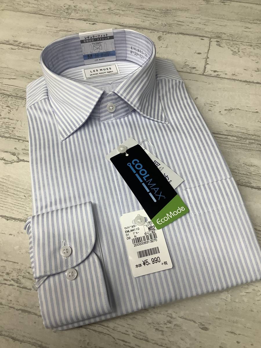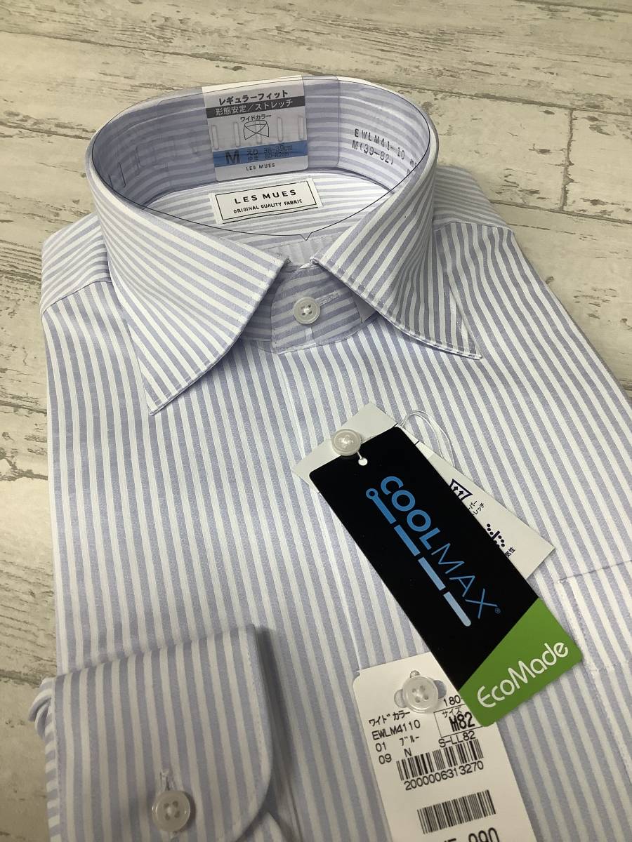 新品 39-82長袖Mサイズ ★淡いブルーラインのドレスシャツ ストレッチ素材サービス