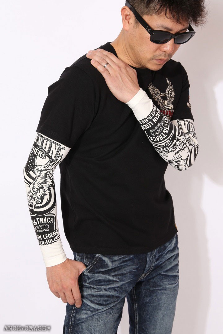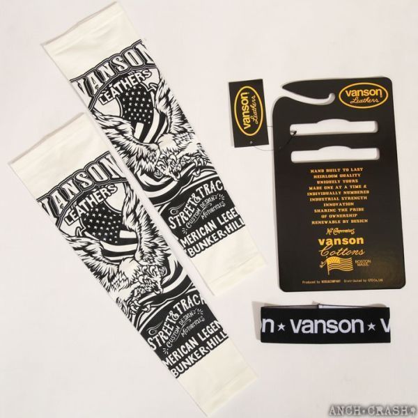 バンソン VANSON ドライ アームシェード NVAS-2001【ホワイト】ロング イーグル サポーター プリント アメカジ