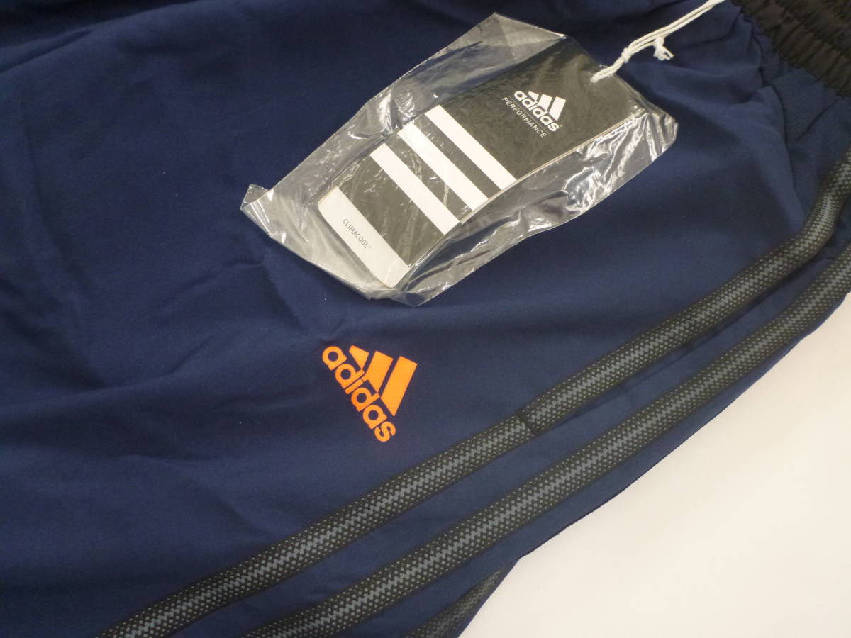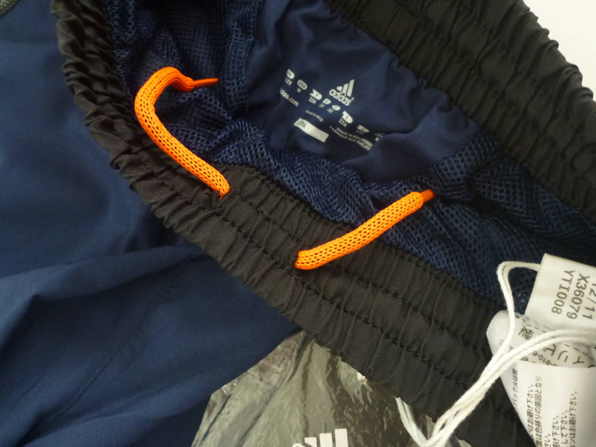 新品 adidas アディダス★紺 ロゴ刺繍 裏地メッシュ ハーフパンツ 150